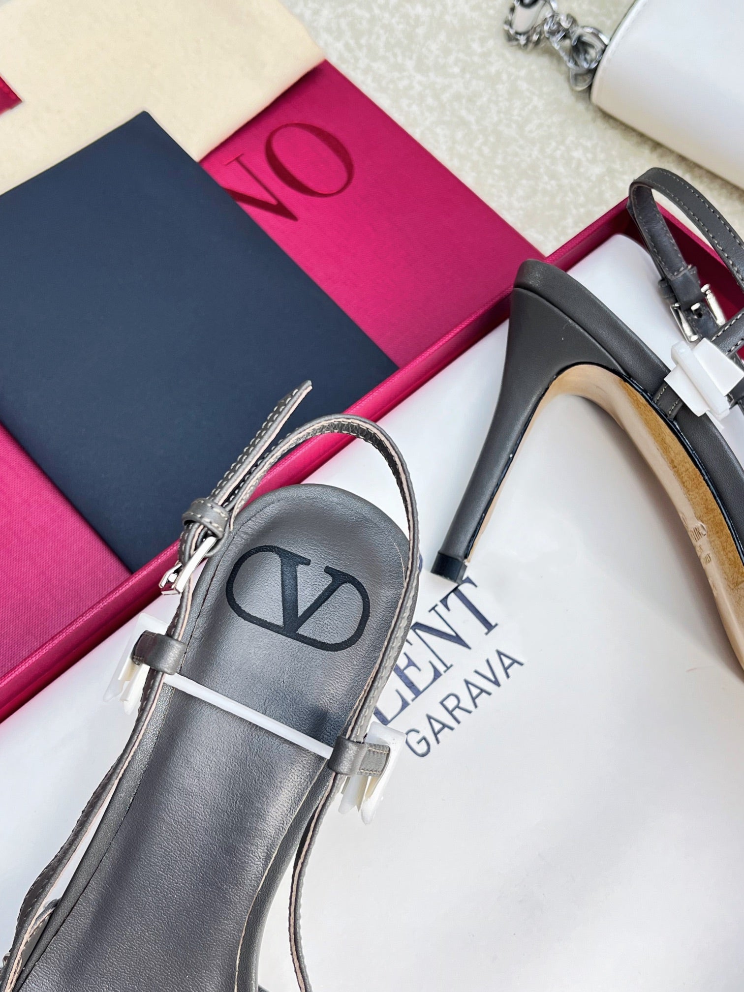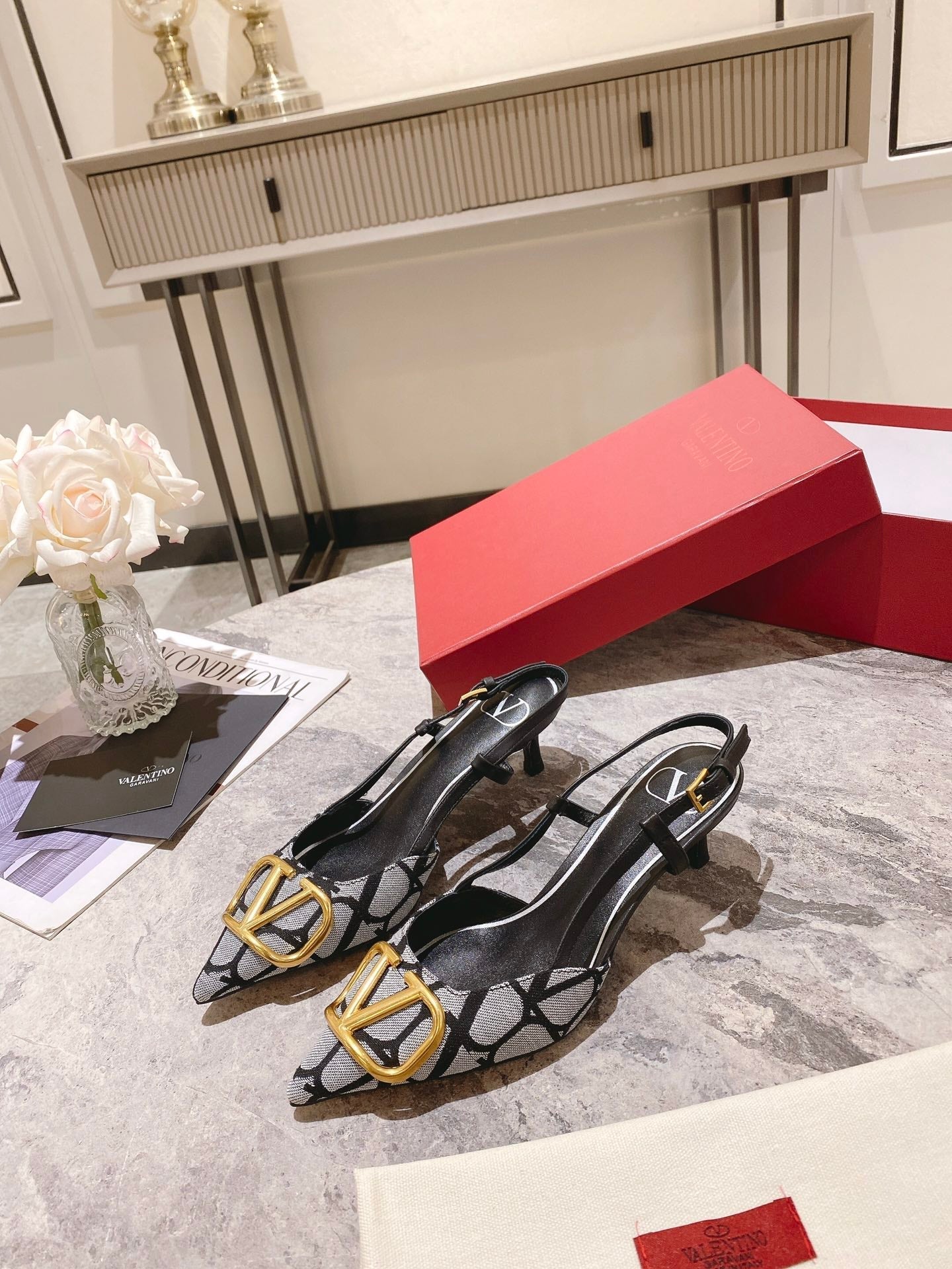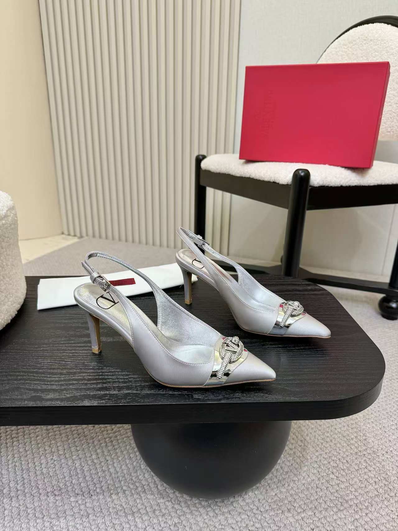 Valentino 25 White Vlogo Signature Slingback Pumps Black Silk 239504