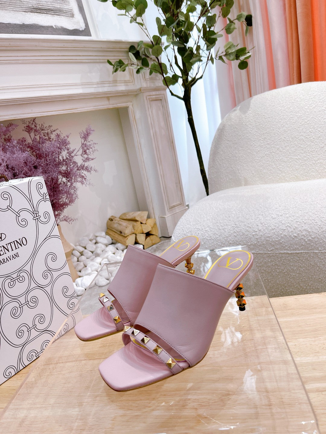 Rockstud Wispy Calfskin Mule 90mm Matte Rose Cannelle