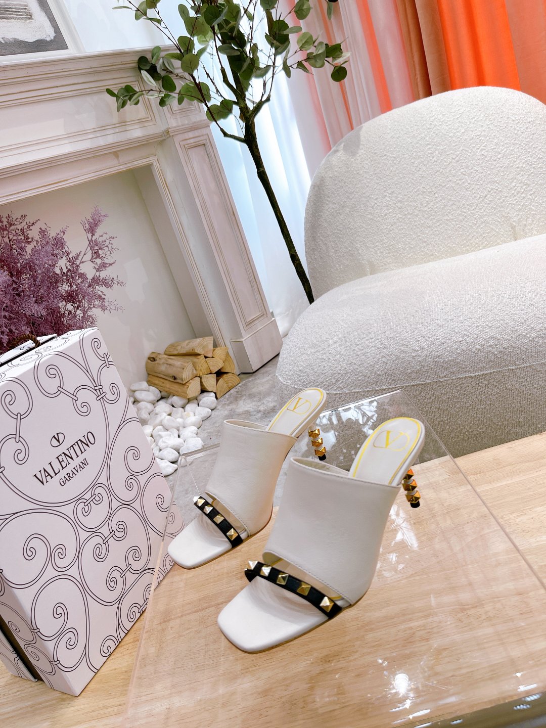 Rockstud Wispy Calfskin Mule 90mm Matte White