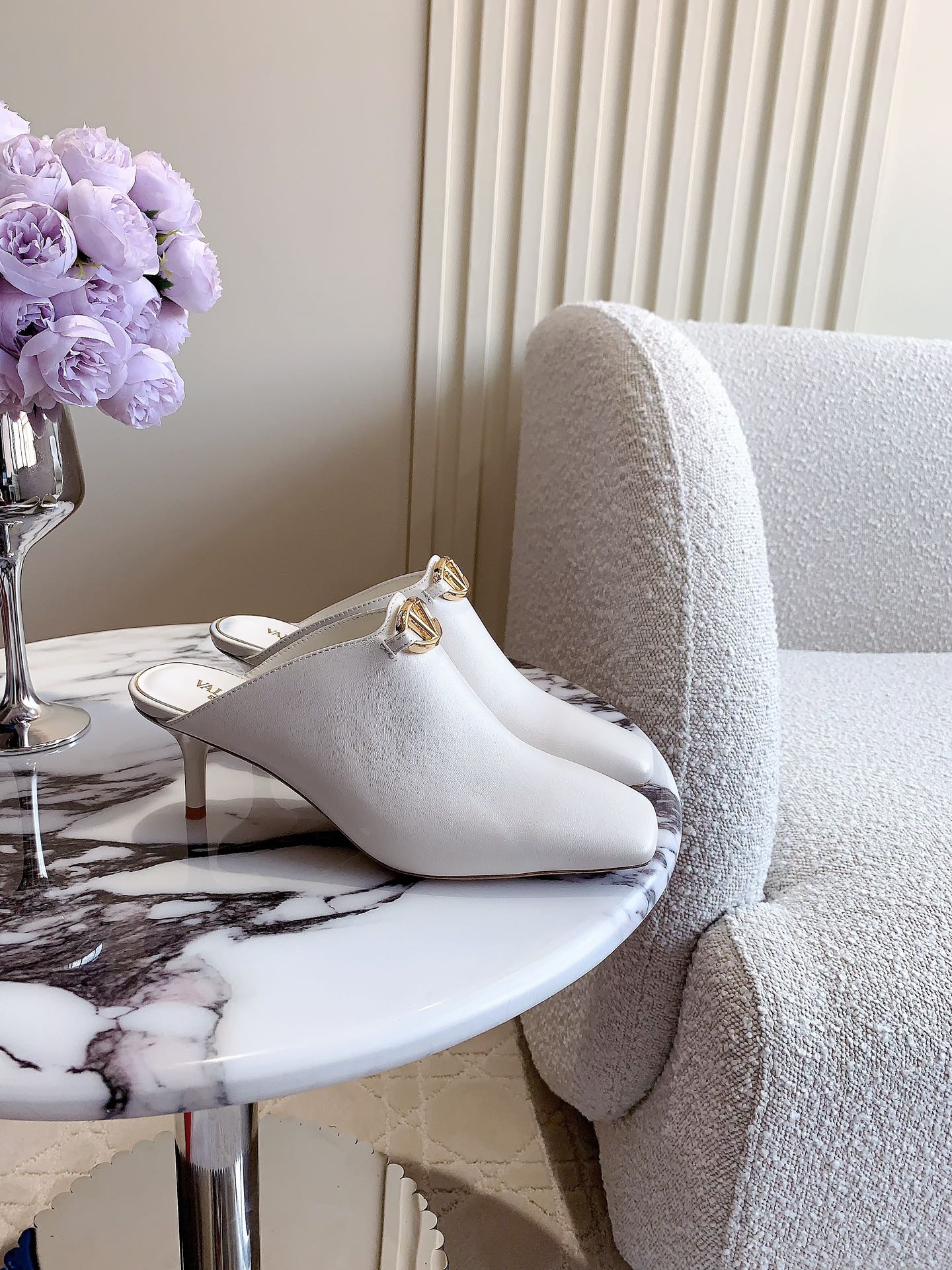 Rockstud Wispy Calfskin Mule 65mm Shiny White