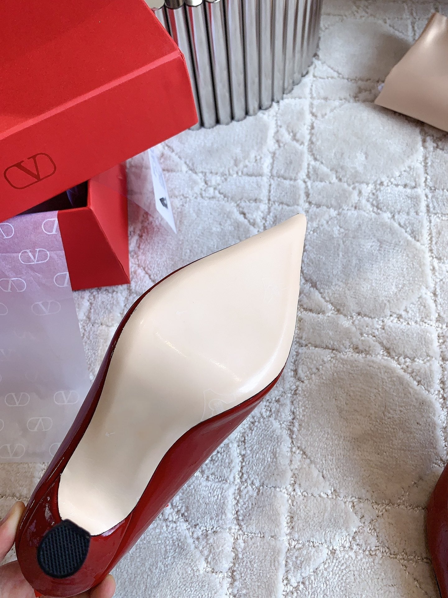 Rockstud Wispy Calfskin Mule 65mm Shiny Red