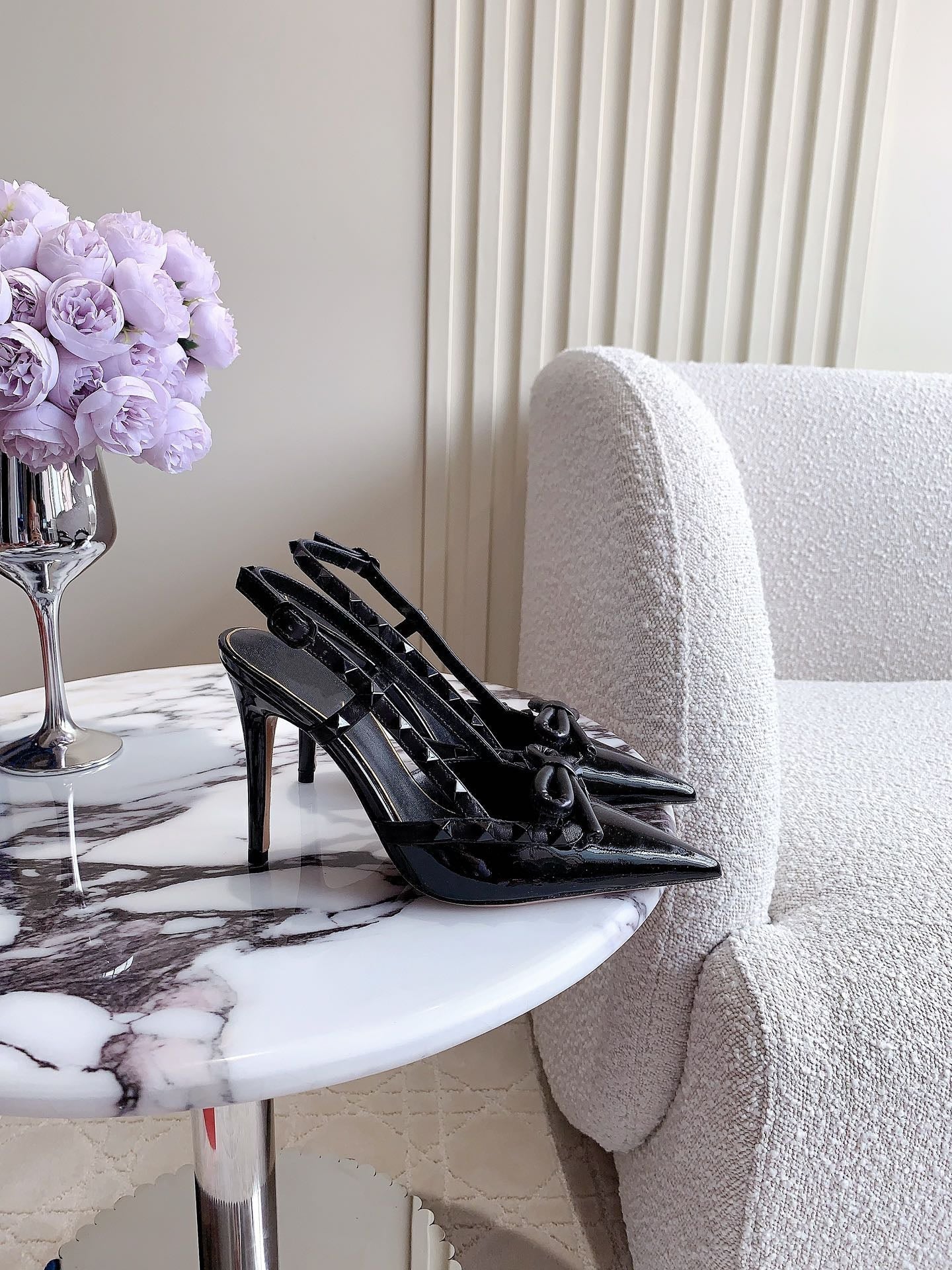 2 Rockstud Slingback 65mm Shiny Black
