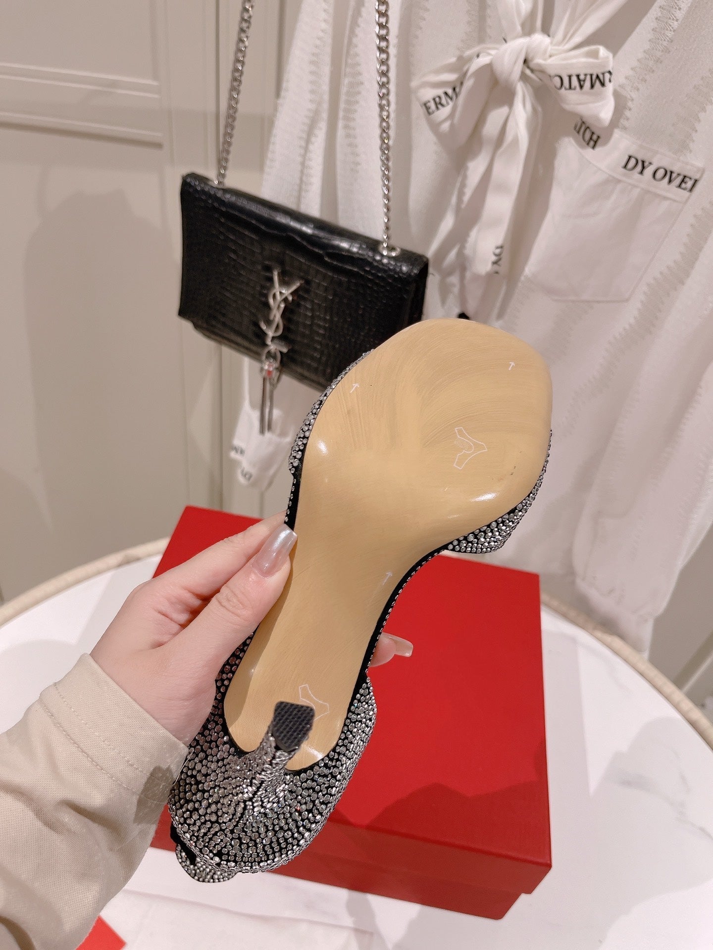 Open Toe Pump With One Stud Diamond Patent Black Leather 130MM