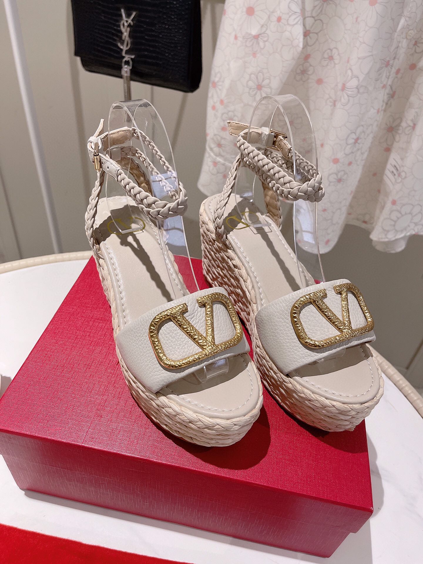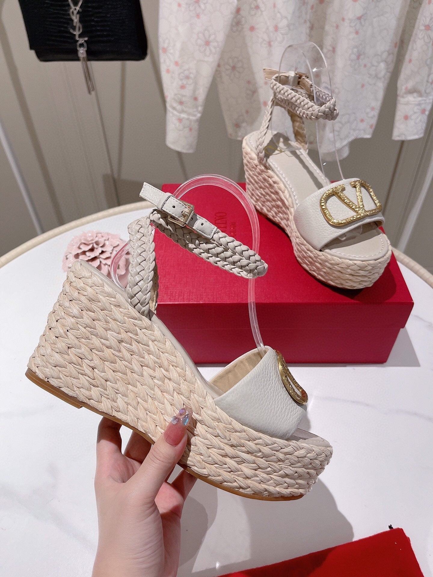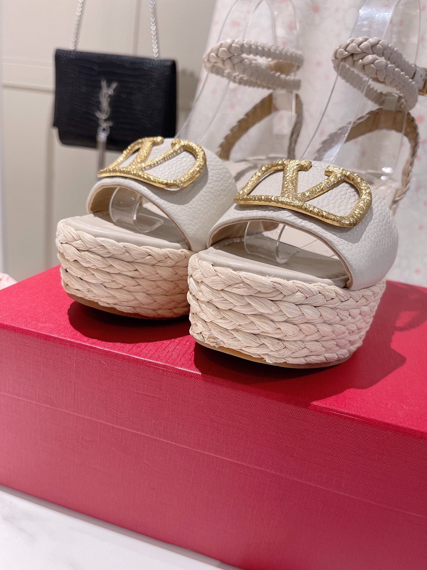VLogo Signature Calfskin Wedge Sandal 90mm White