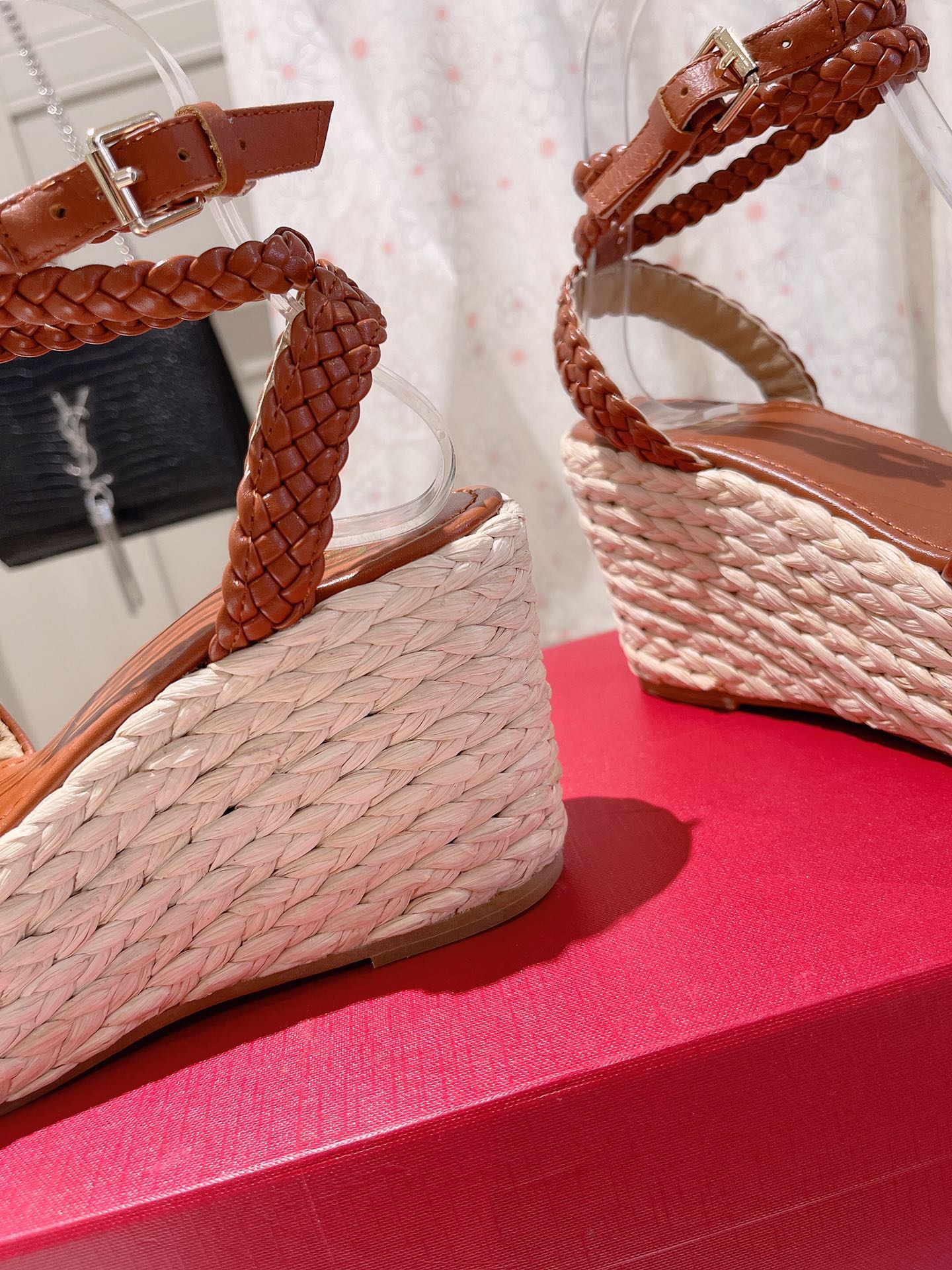 VLogo Signature Calfskin Wedge Sandal 90mm Burgundy