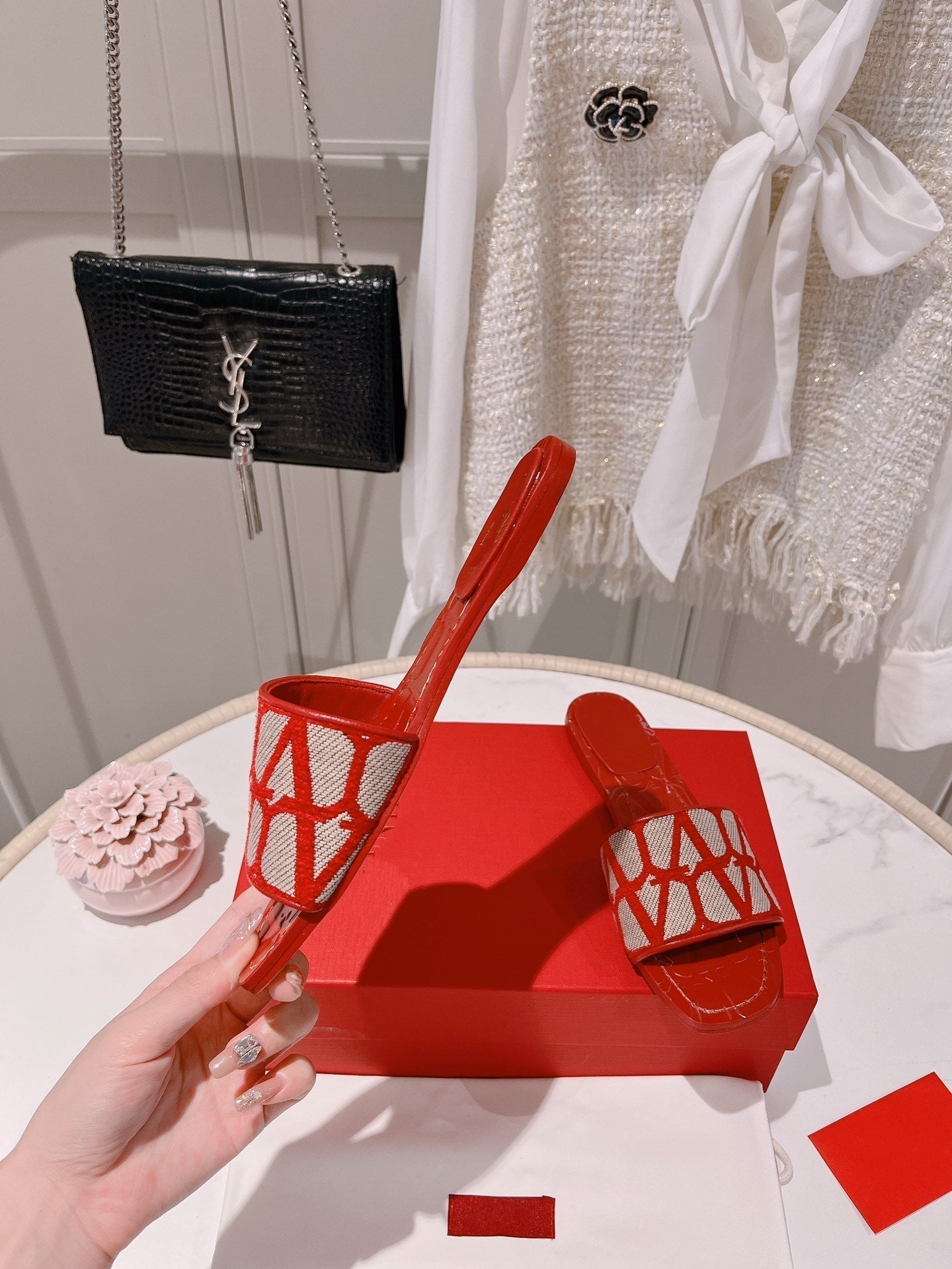 Toile Iconographe Slide Sandal Red Beige