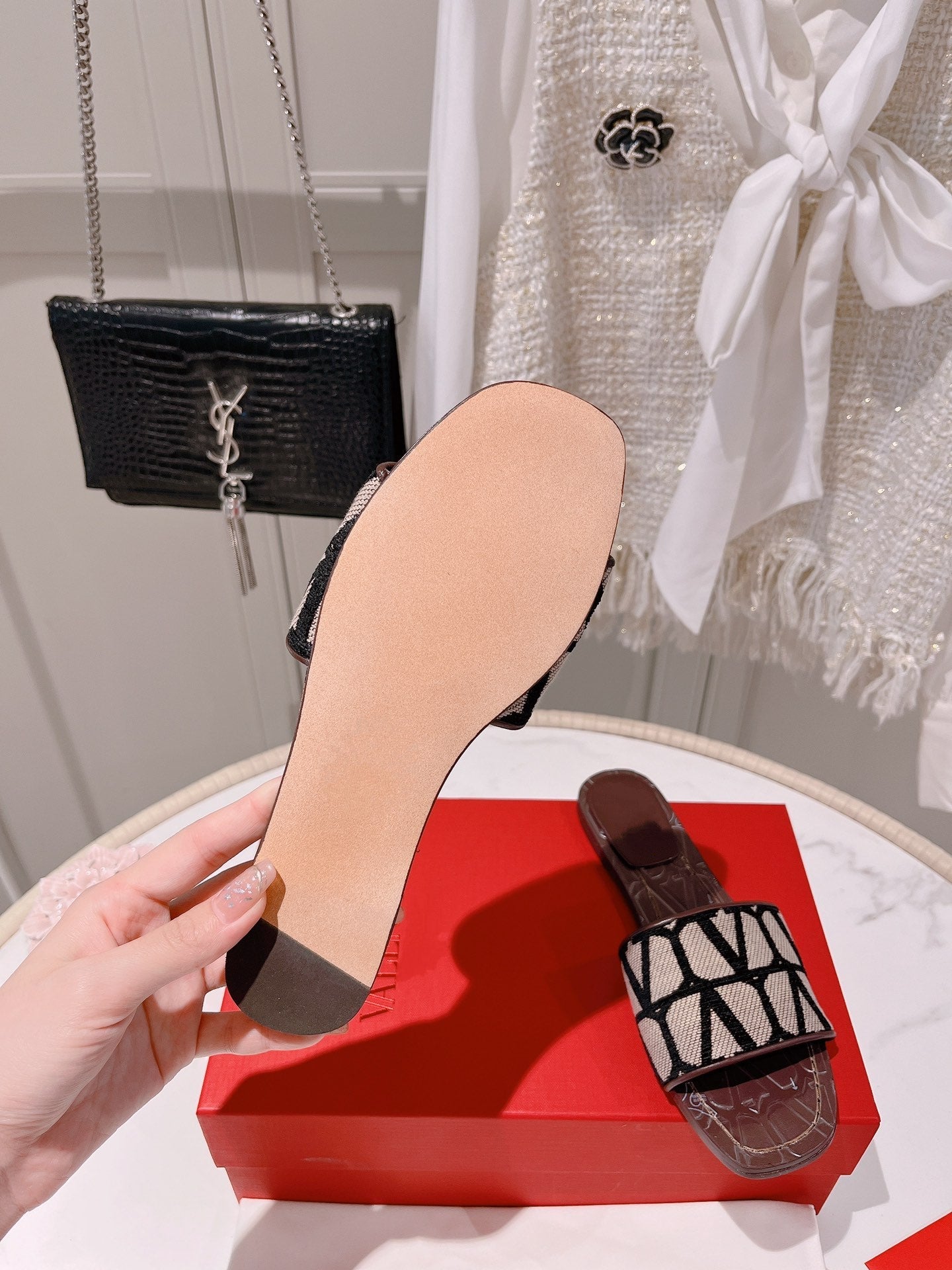 Toile Iconographe Slide Sandal 65mm Black Beige