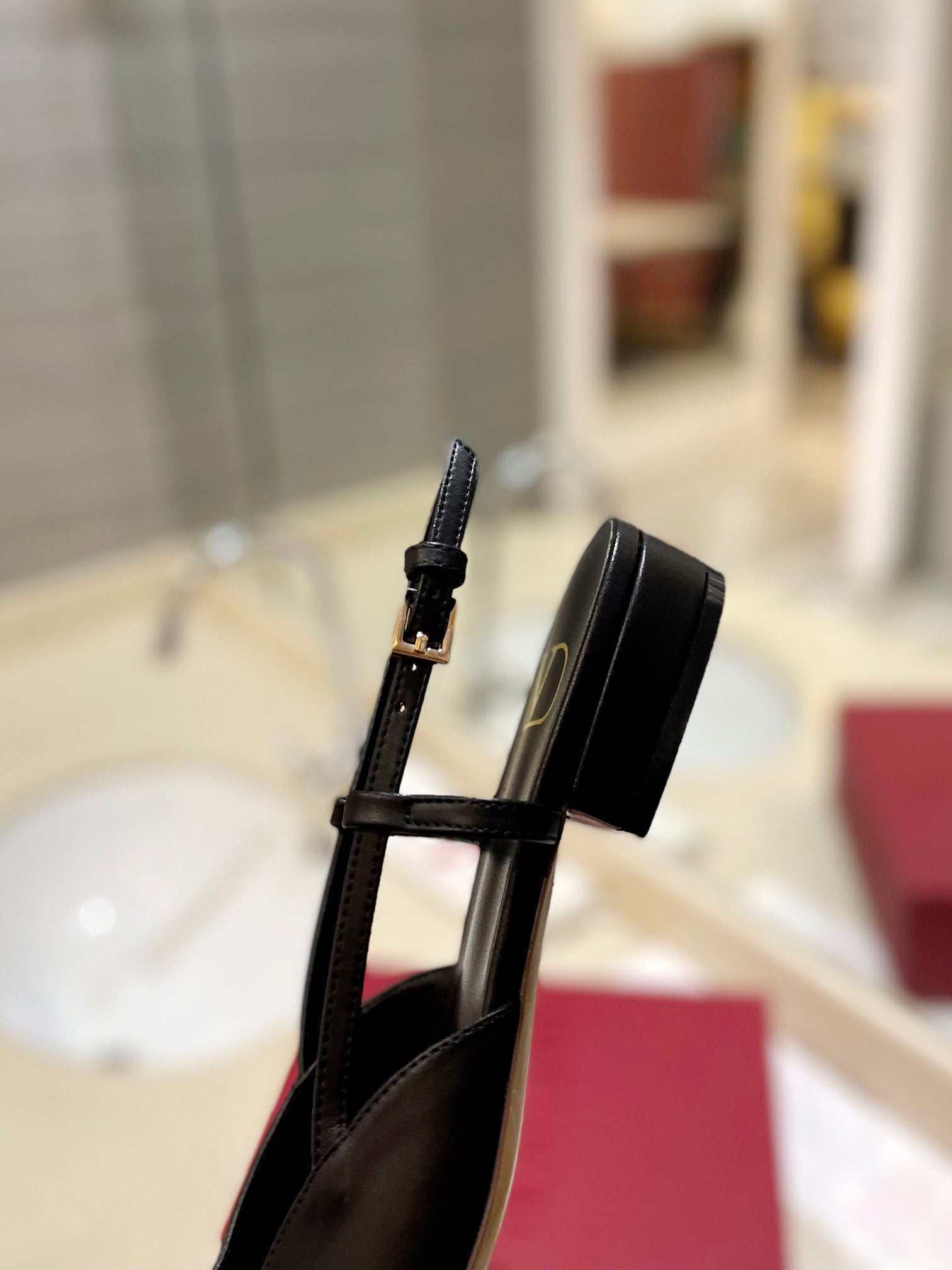 VLOGO BLACK LEATHER SLINGBACK FLATS