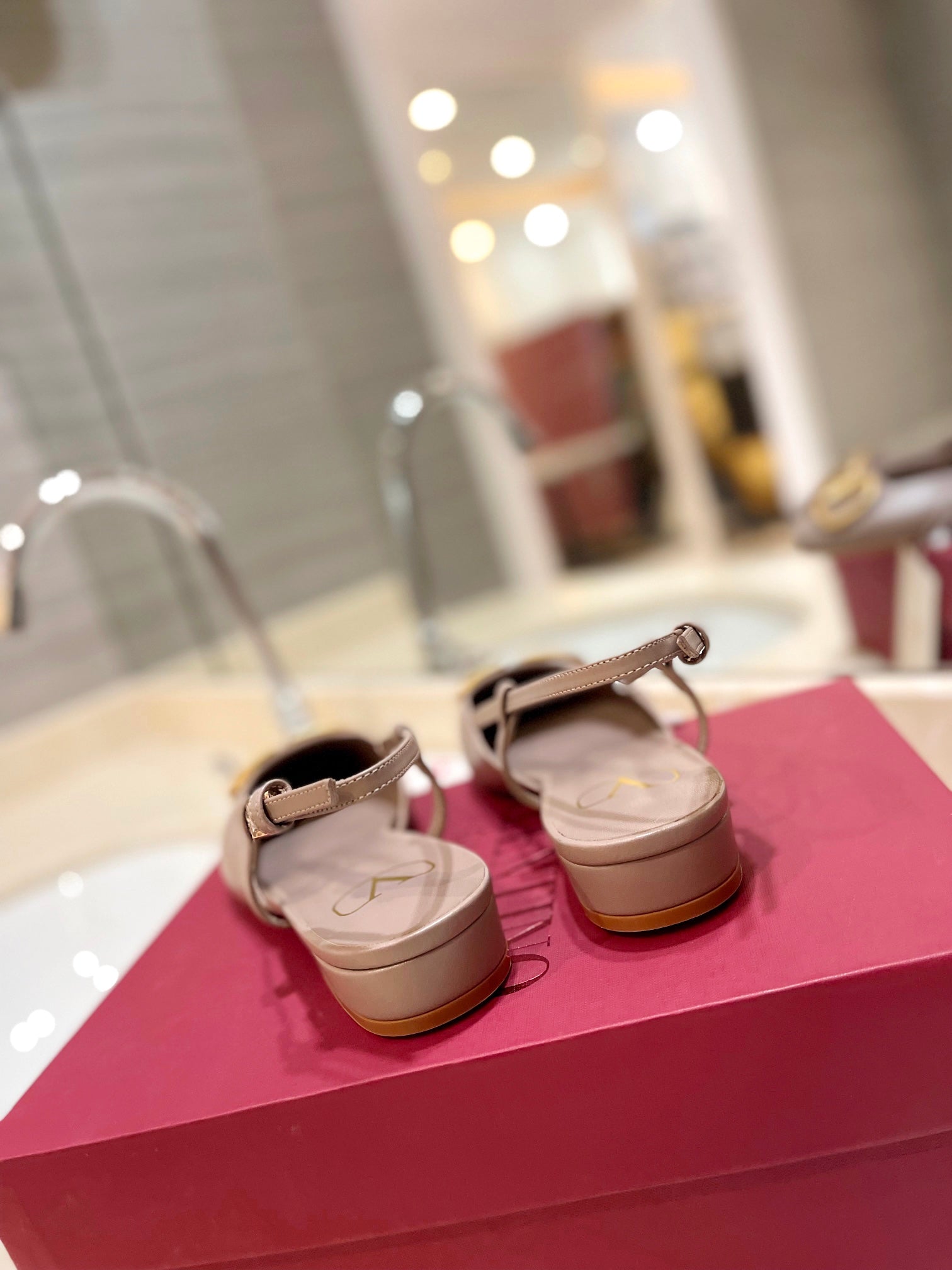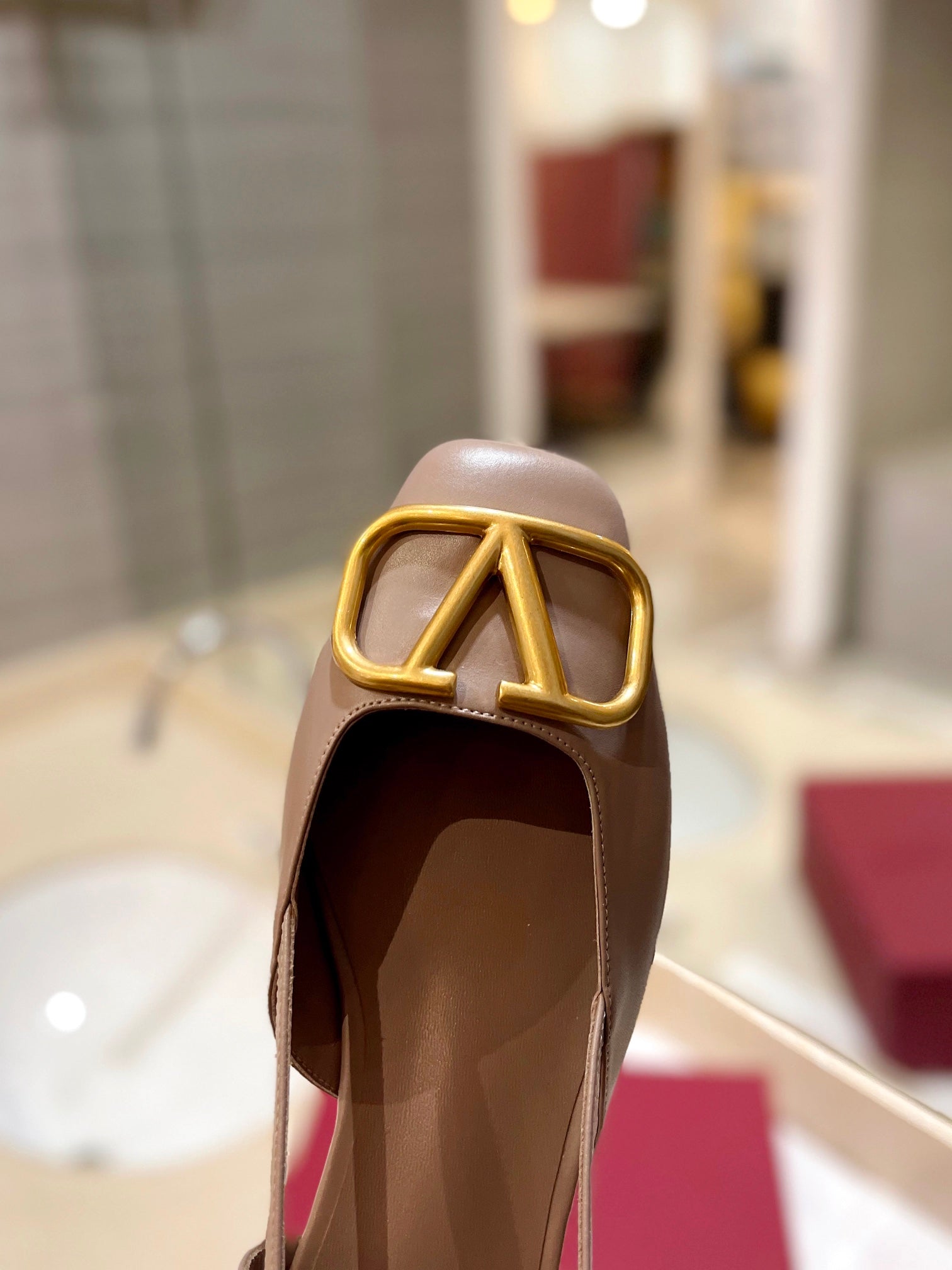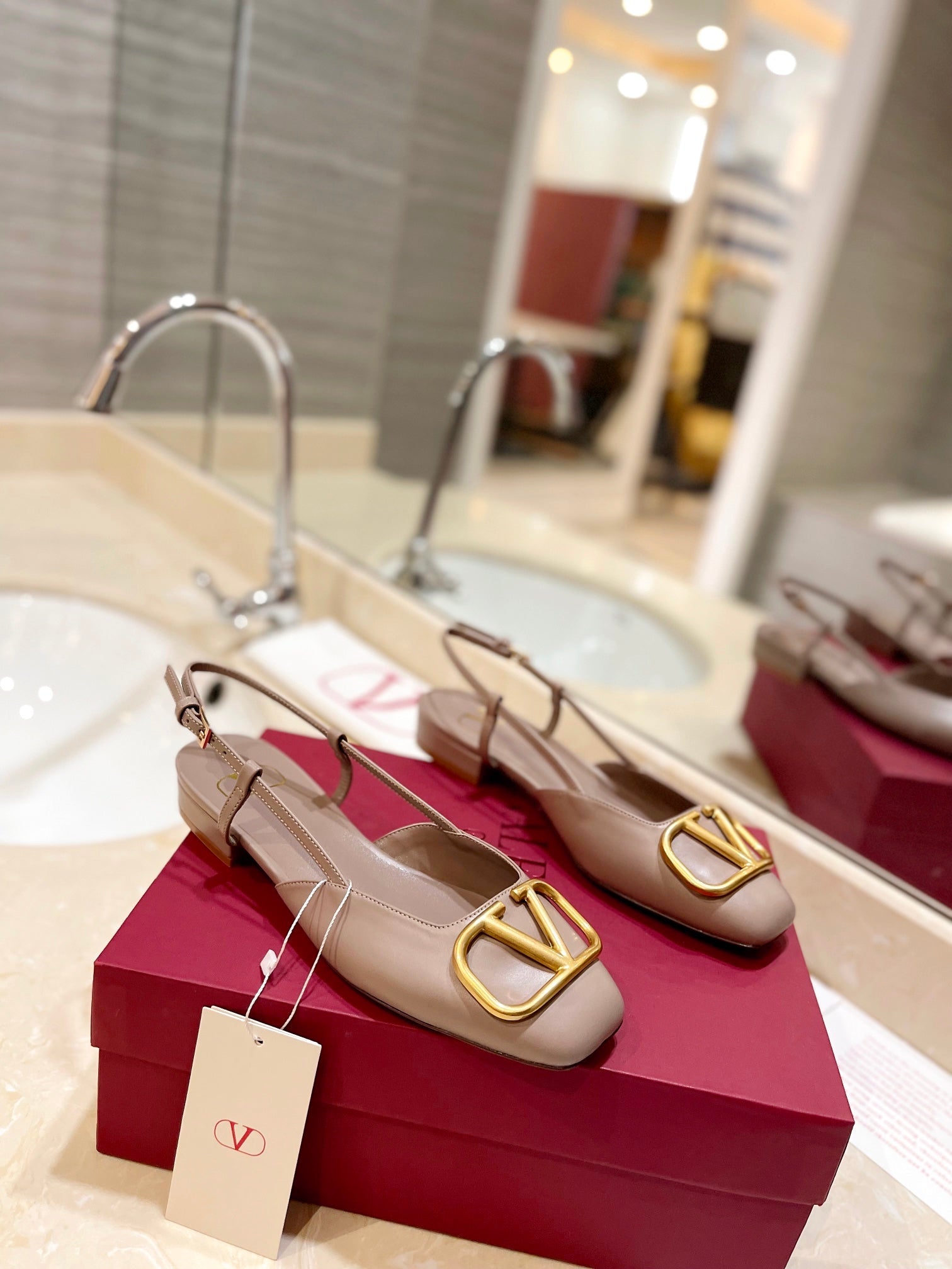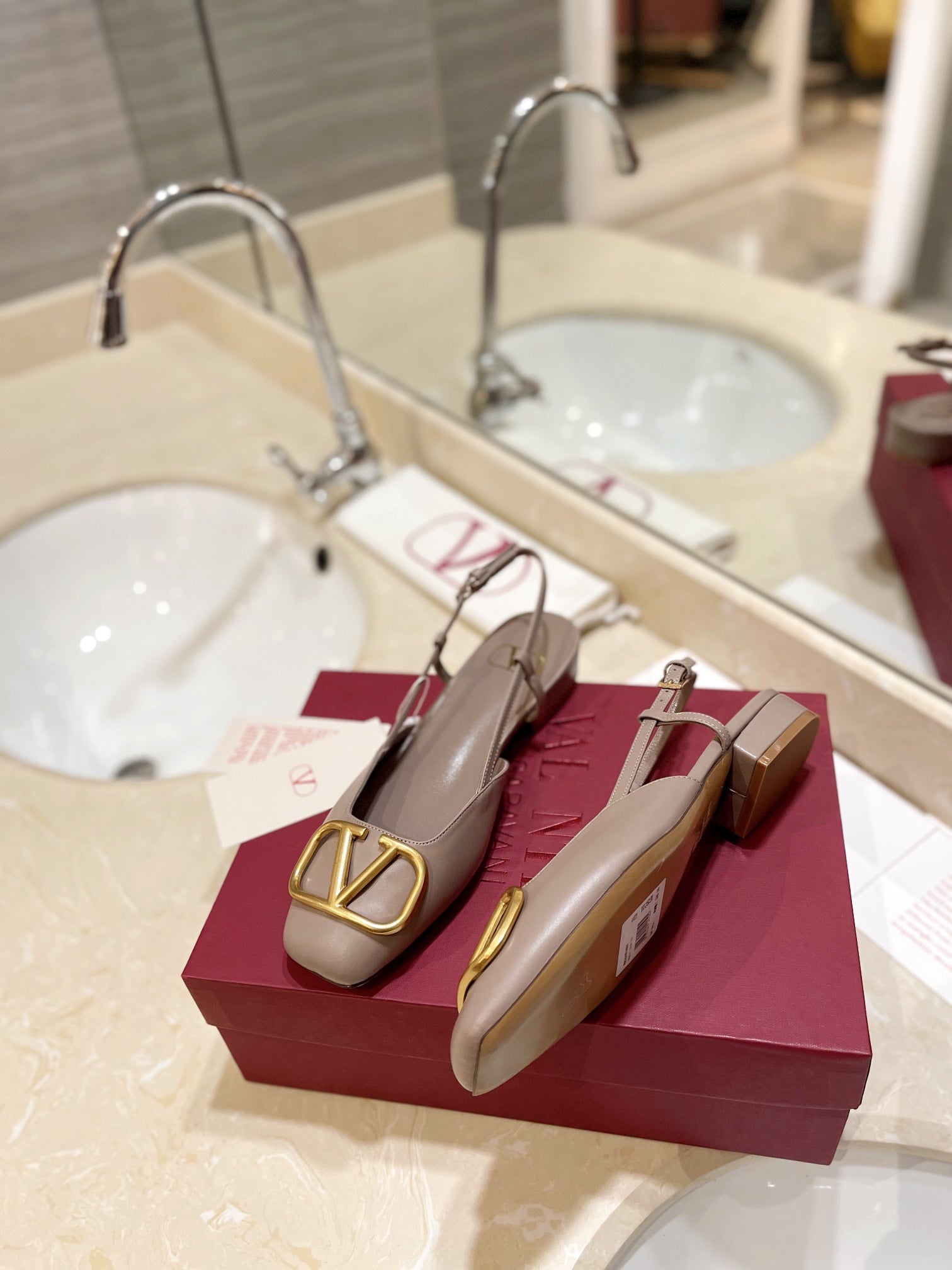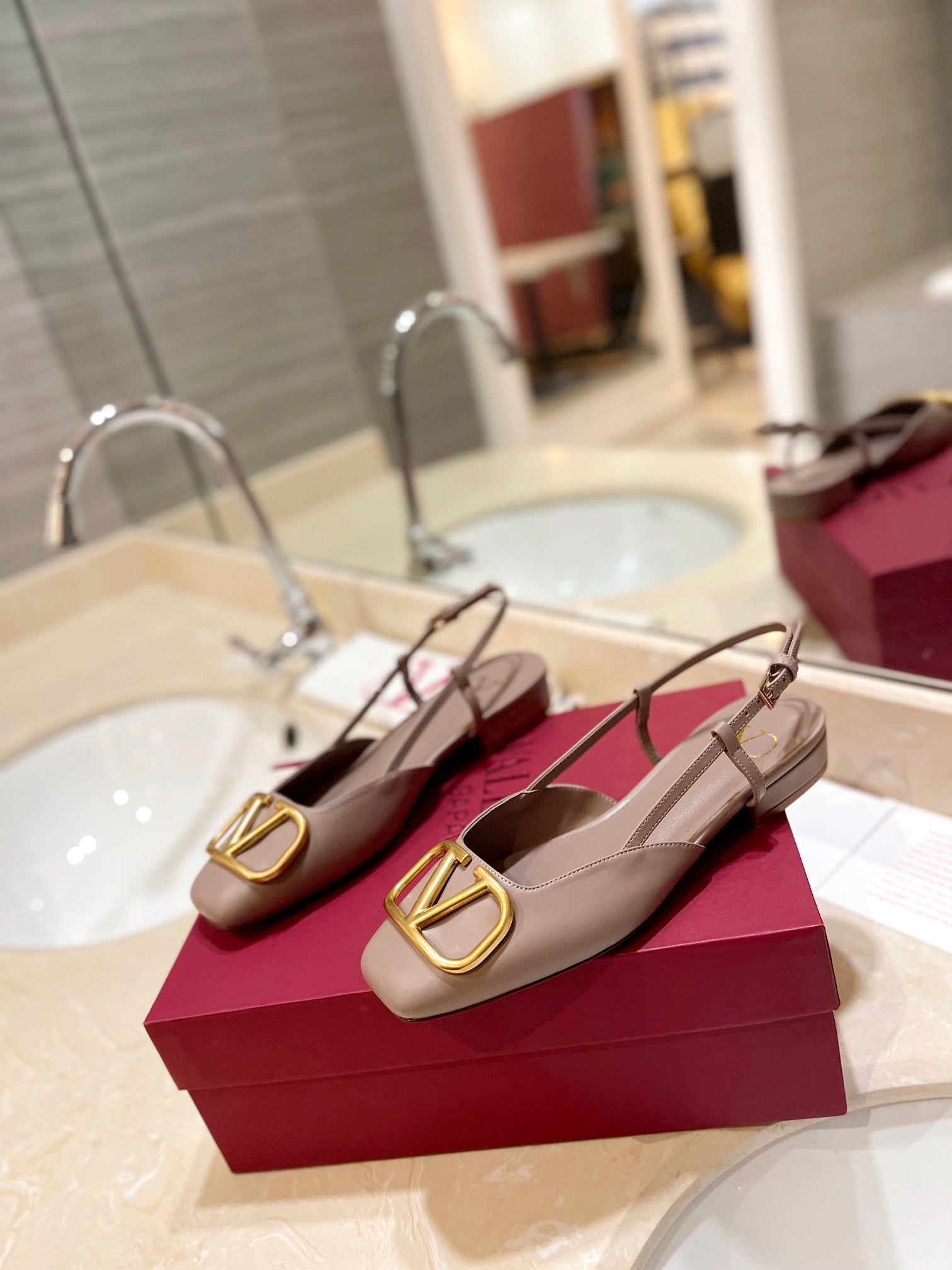 VLOGO BEIGE LEATHER SLINGBACK FLATS