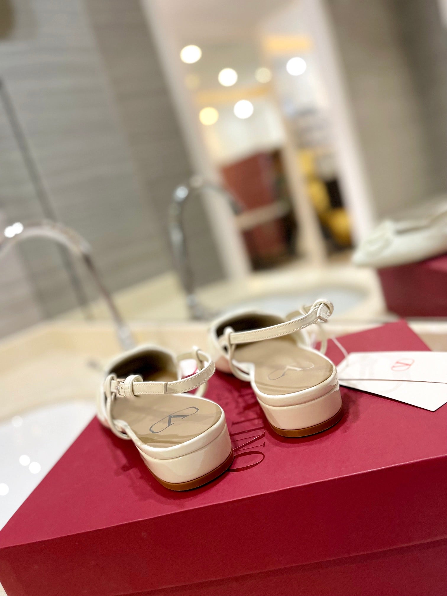 VLOGO WHITE PATENT LEATHER SLINGBACK FLATS