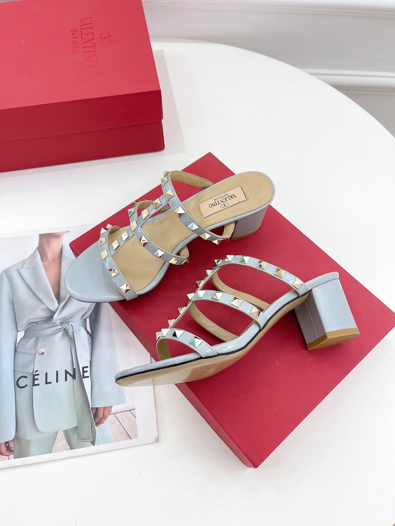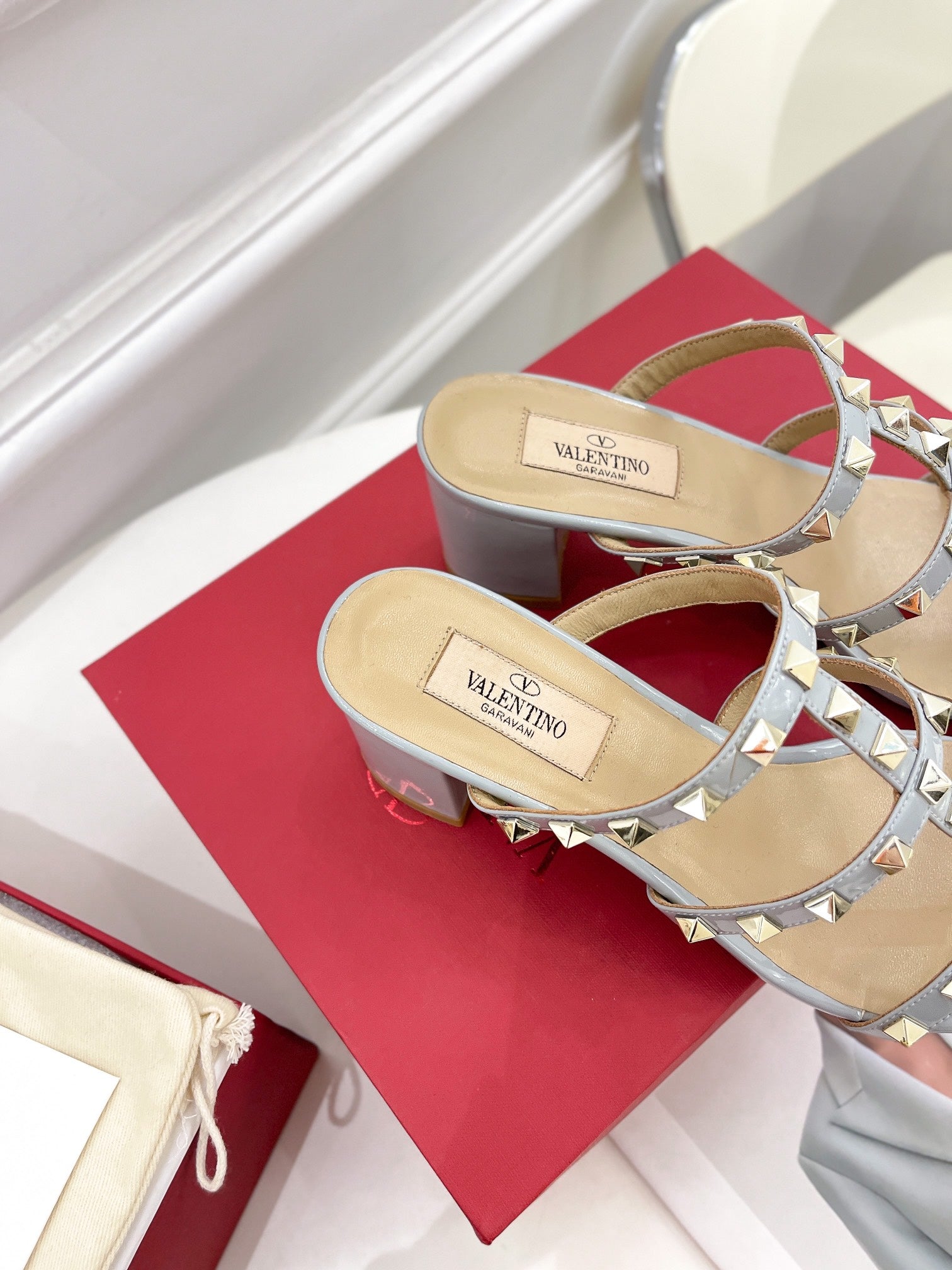 80mm Rockstud Patent Rose Cannelle Leather Mules