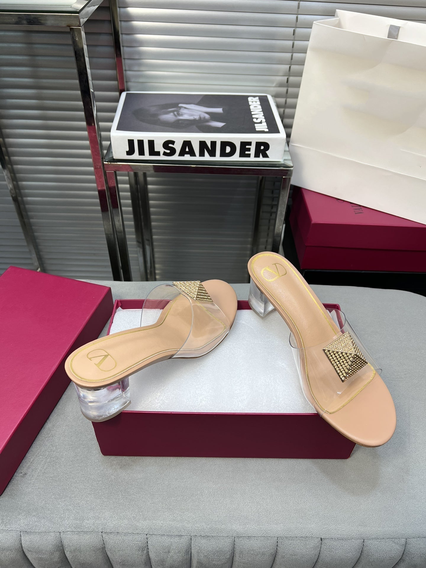 80mm Rockstud Patent Rose Cannelle Leather Mules Transparent