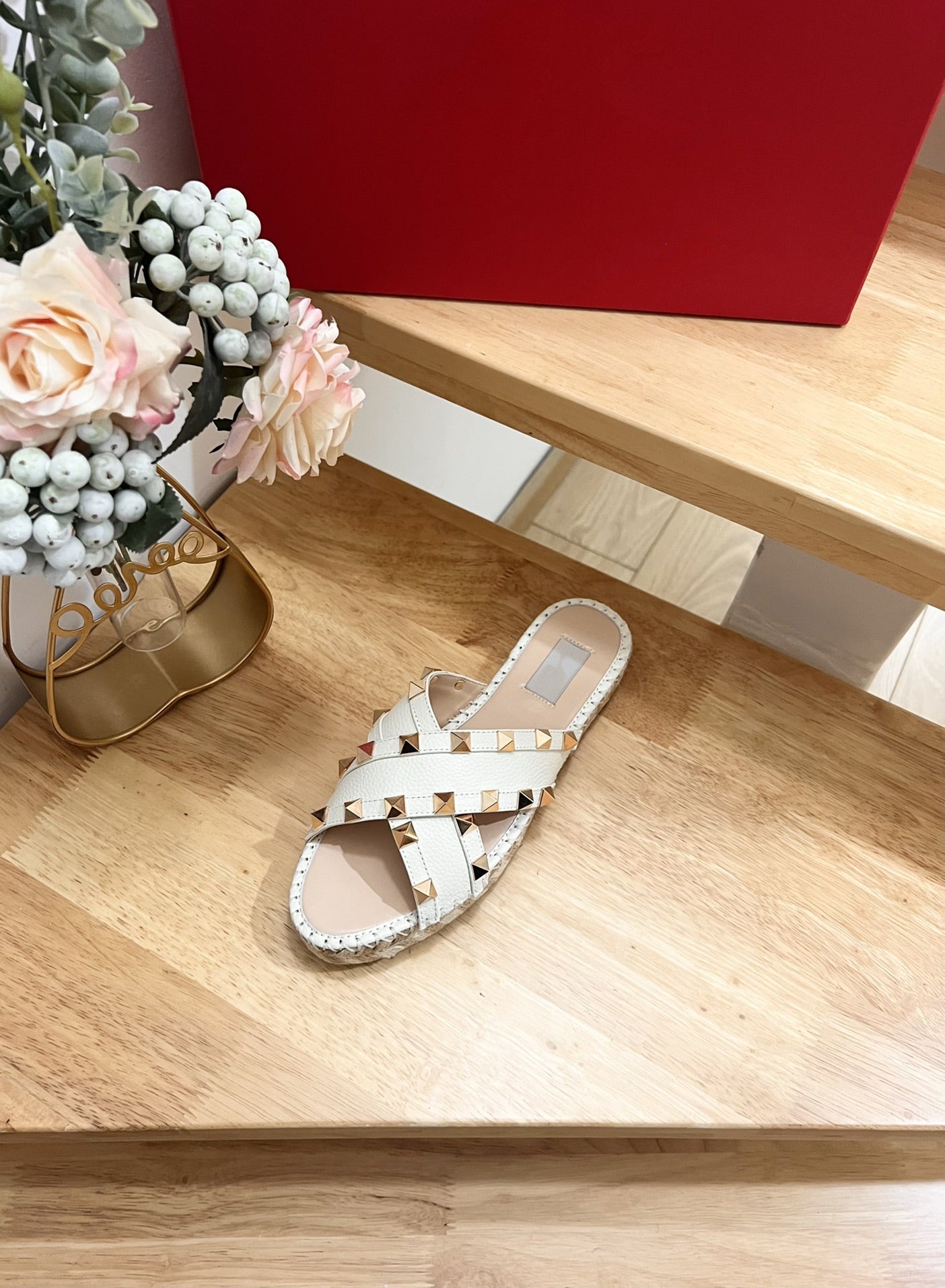 Rockstud Crisscross Espadrilles 20mm Sandal Wedges Ivory