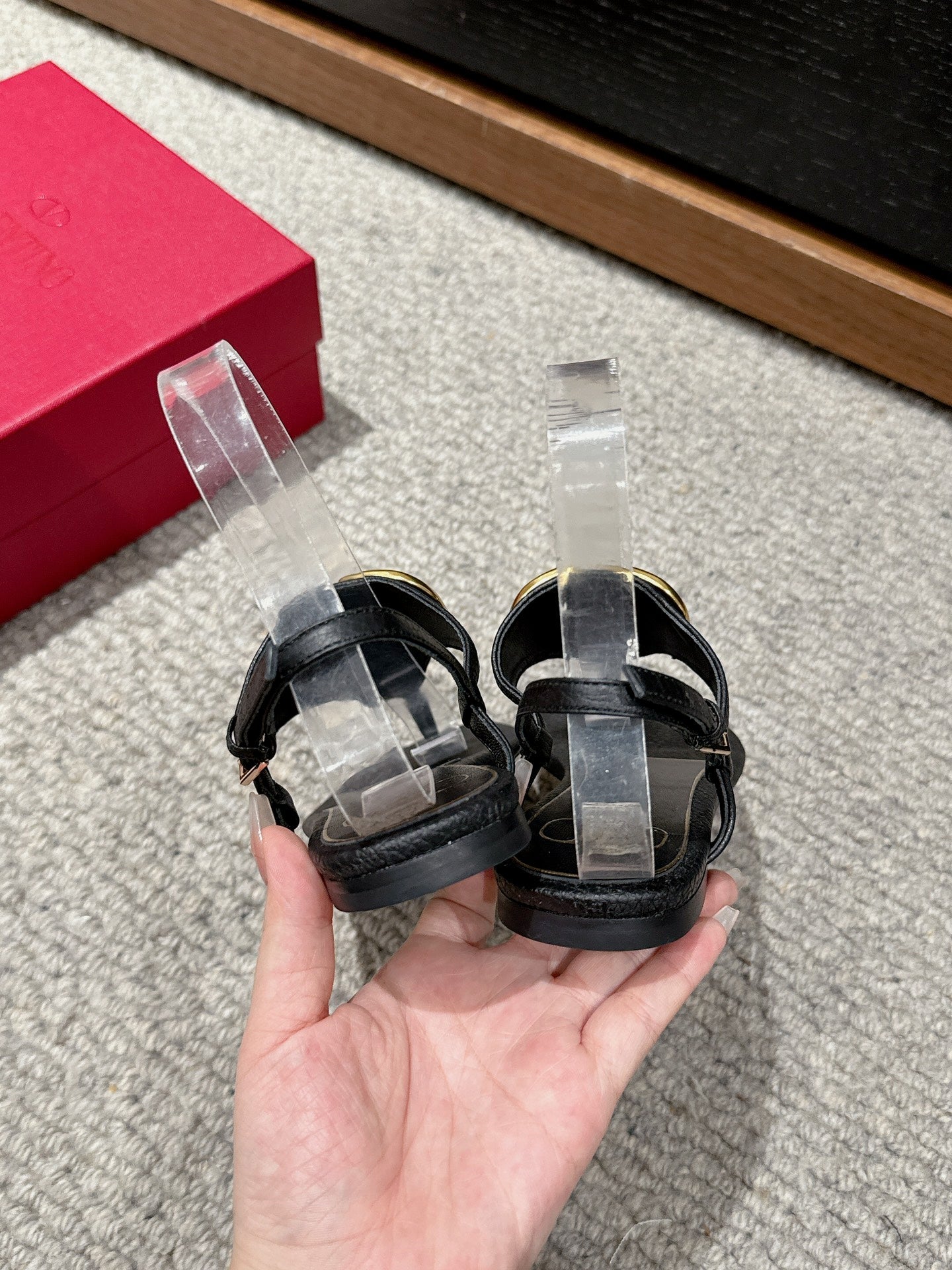ROCKSTUD SANDAL WITH STRAPS IN BLACK CALFSKIN