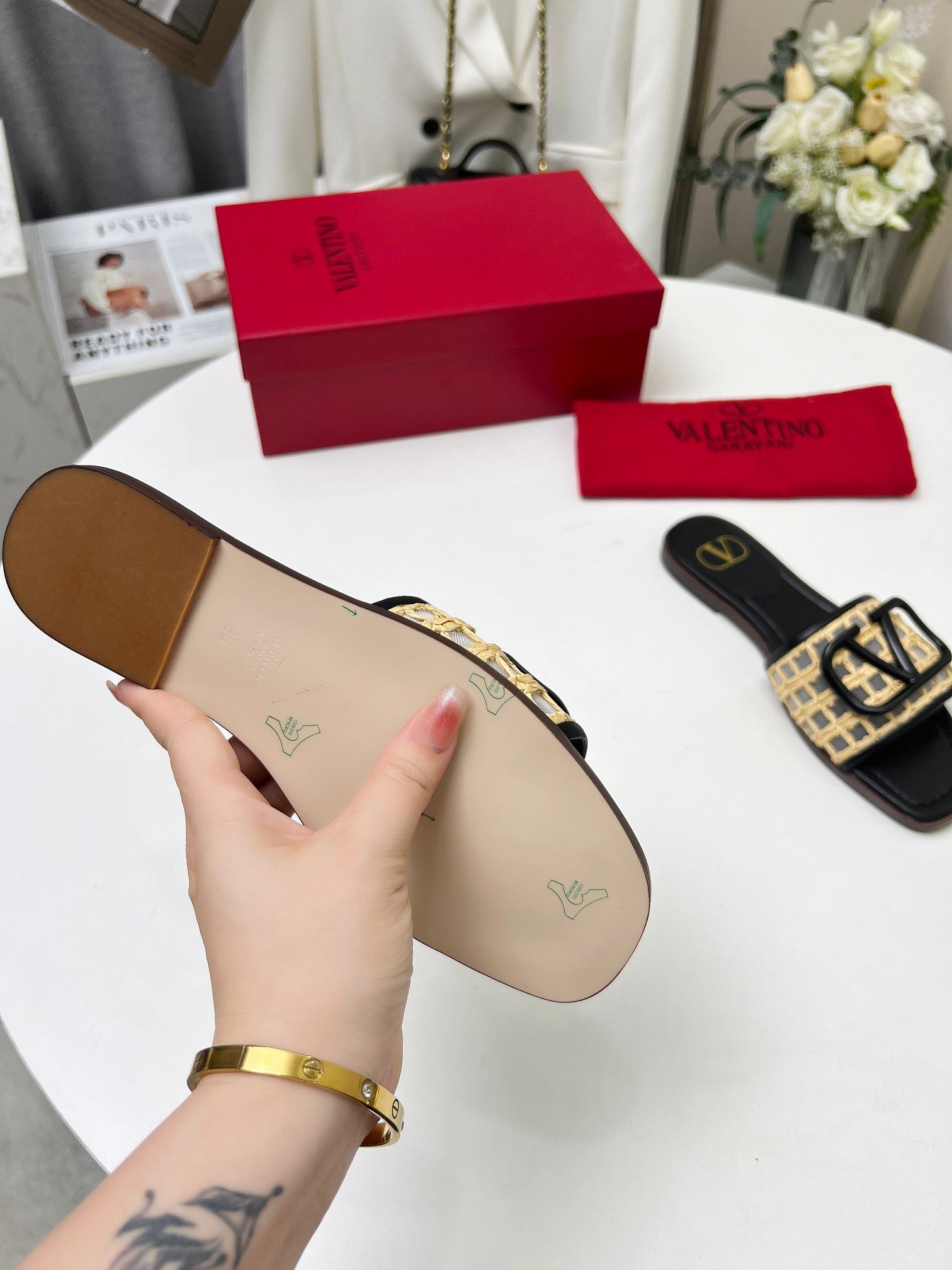 Vlogo embellished leather-trimmed raffia slides baby blue