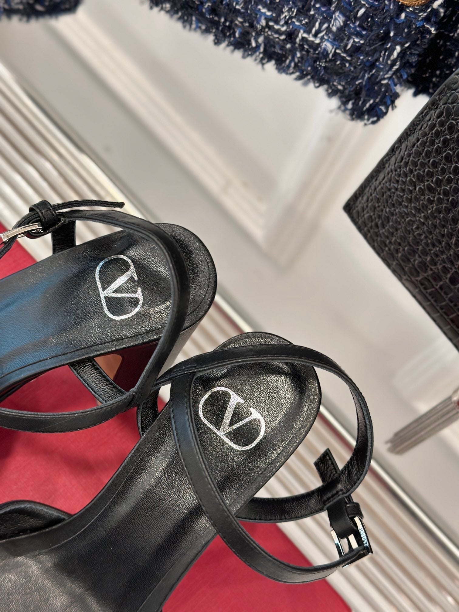 Sandal With Vlogo Signature Platform In Black With Stone Calfskin 110mm 989465