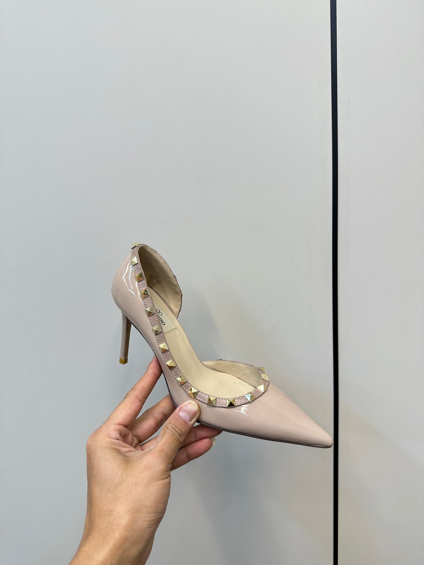Valentino Beige Rockstud D'Orsay Pumps 95mm Cowhide 989891