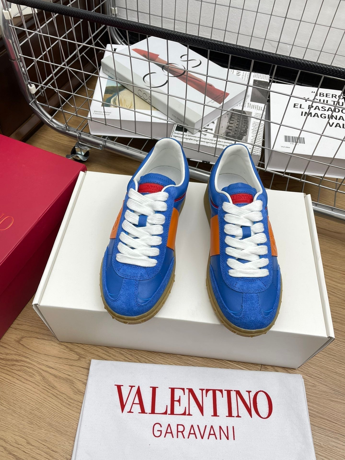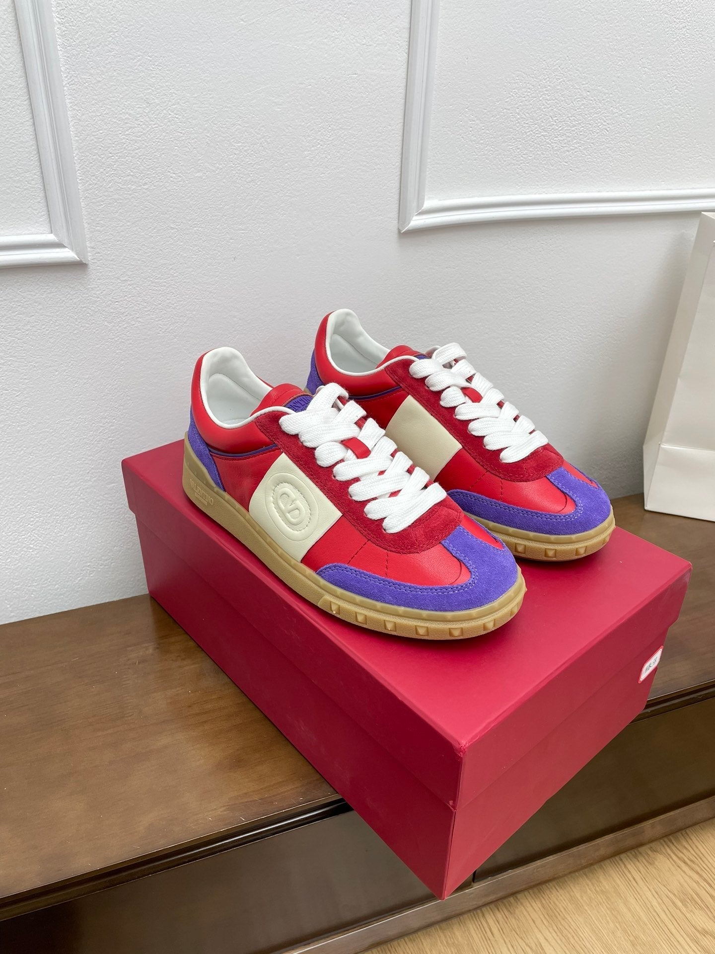 Upvillage Trainer In Red Mix Deep Blue Laminated Calfskin With Suede 989608