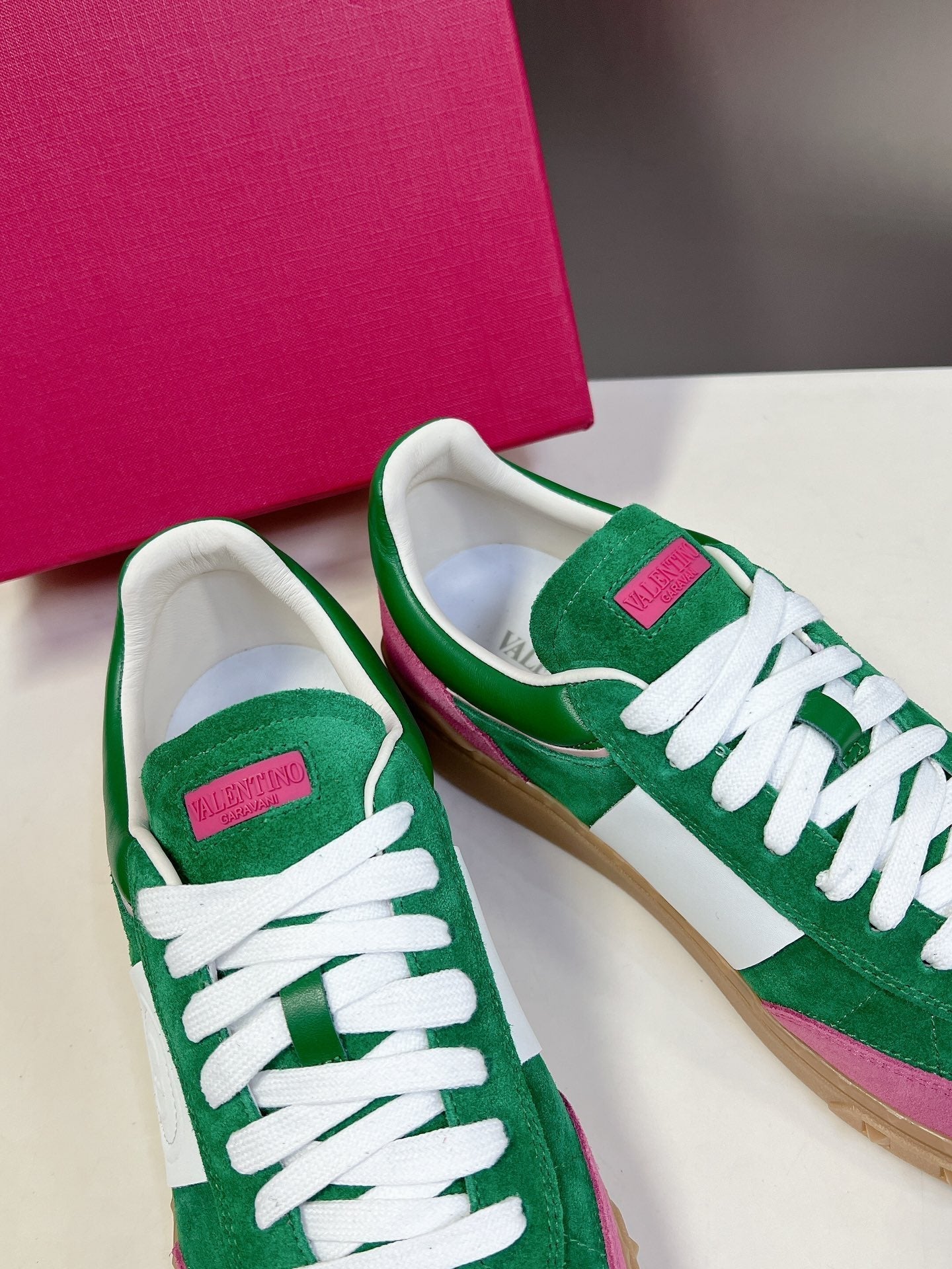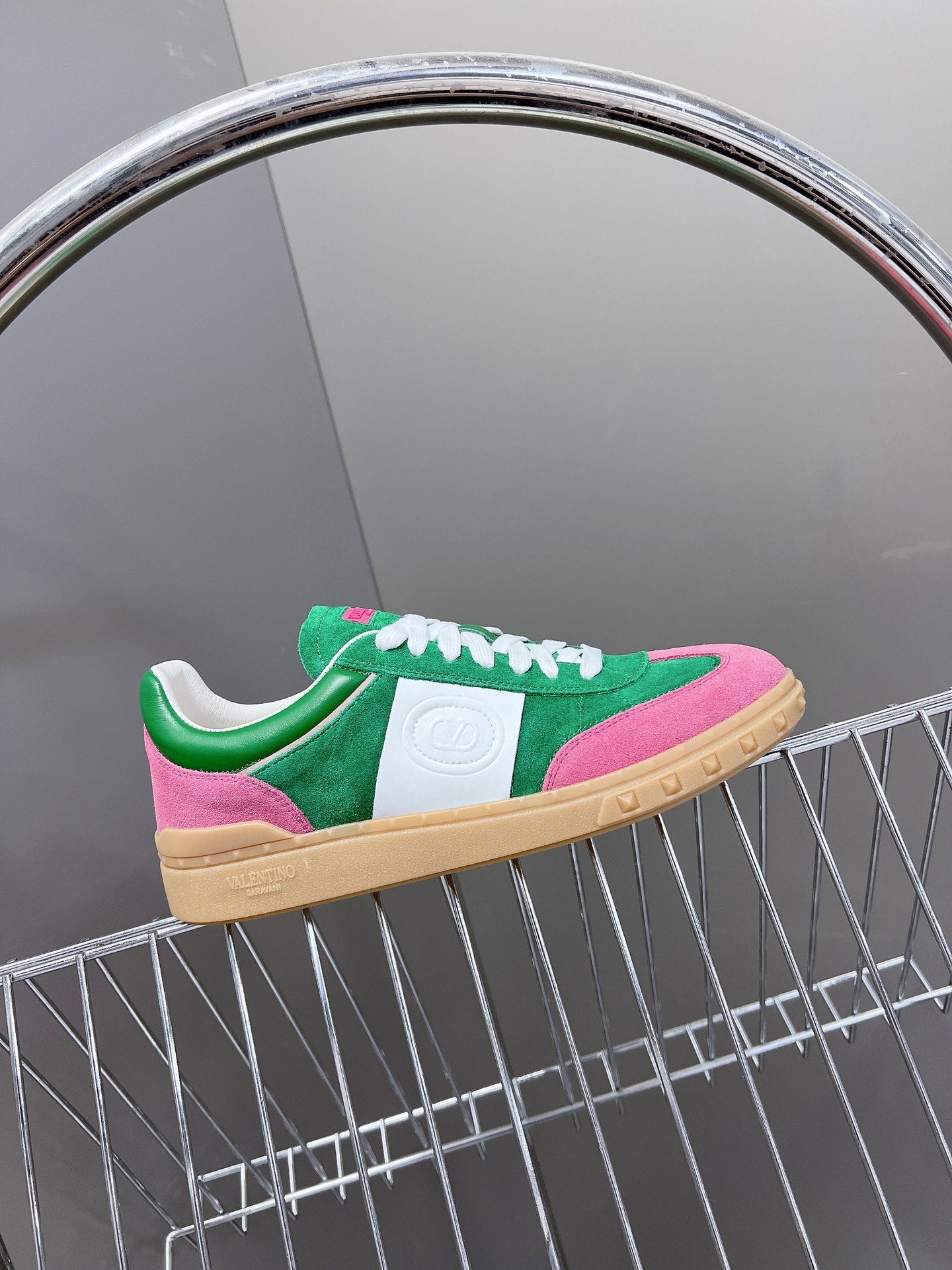 Upvillage Trainer 30mm In Green Mix Light Lotus Pink Suede With Laminated Calfskin 990153