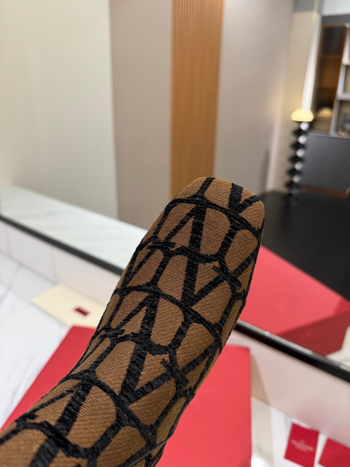 Valentino Garavani VLogo Tall Monogram Ankle Boots 30mm In Brown Mix Black Canvas Fabric 992798