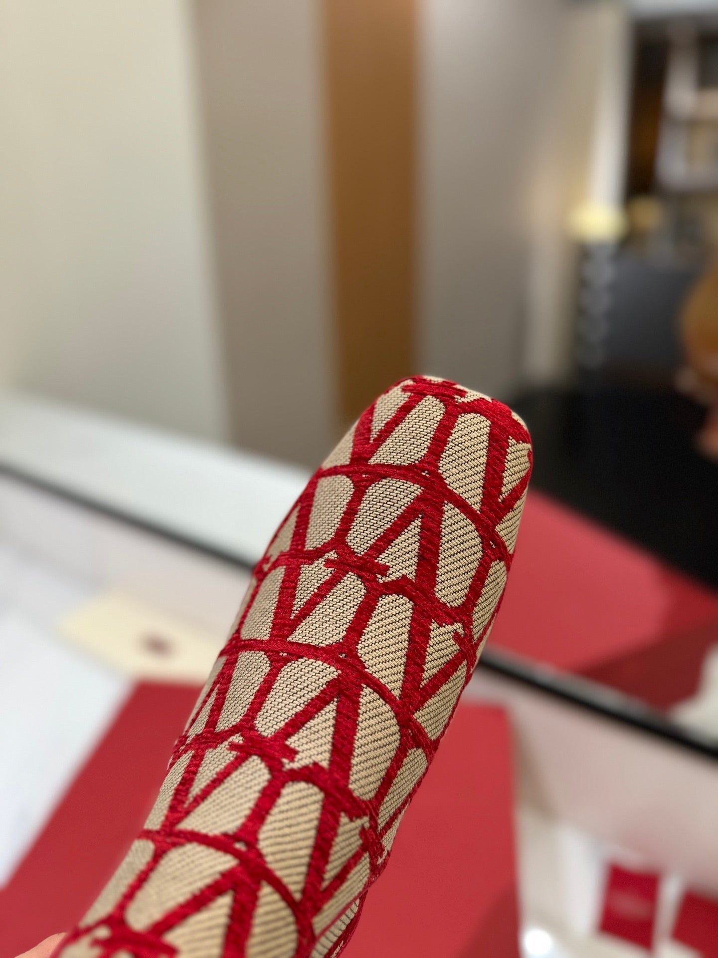 Valentino Garavani VLogo Tall Monogram High Boots 30mm In Beige Mix Red Canvas Fabric 992789