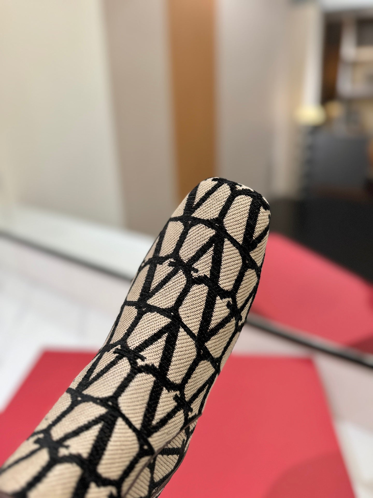 Valentino Garavani VLogo Tall Monogram High Boots 30mm In Beige Mix Black Canvas Fabric 992785