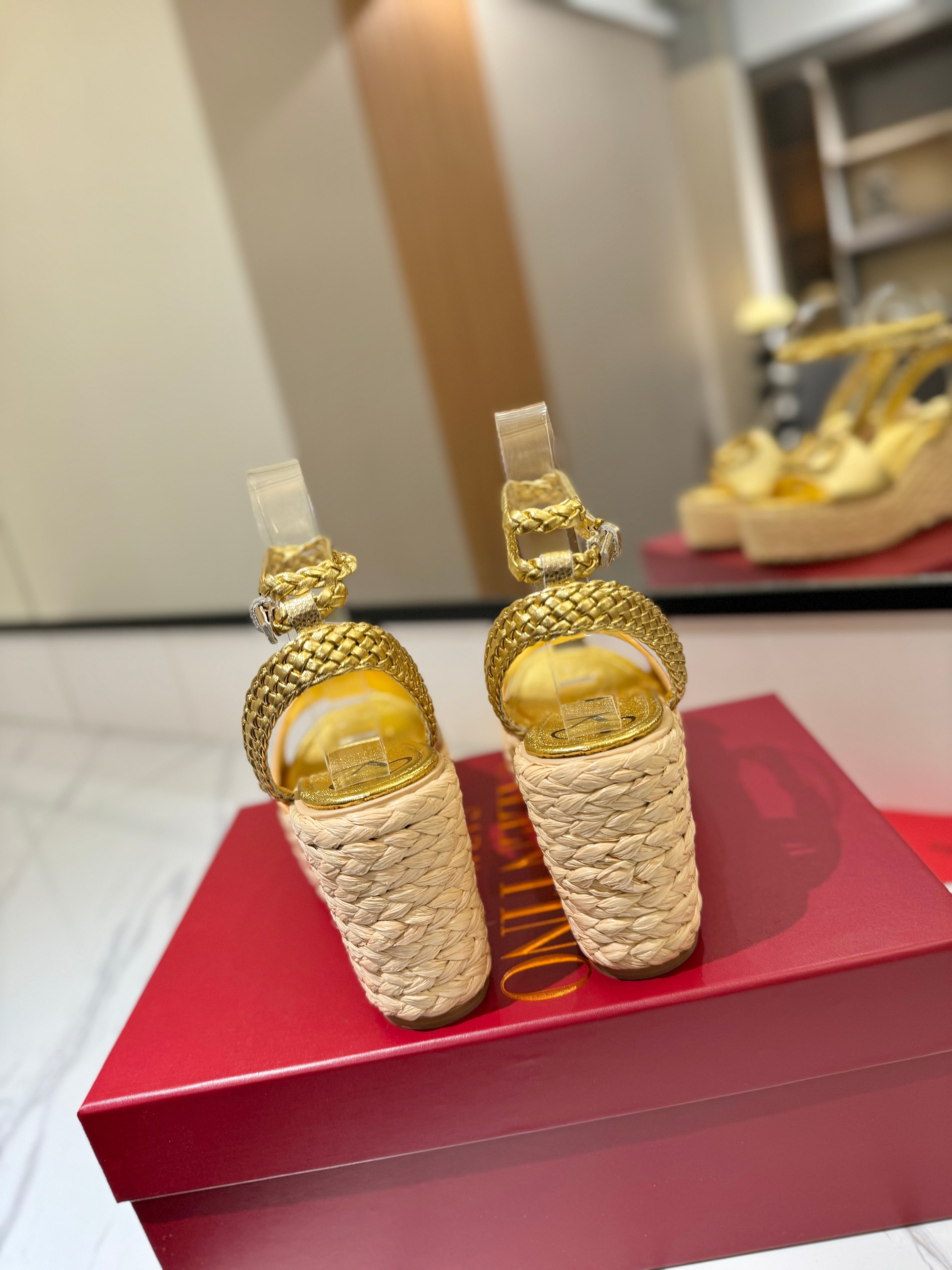 VT 25 Studded Wedge Sandals Beige Gold Calfskin 156079