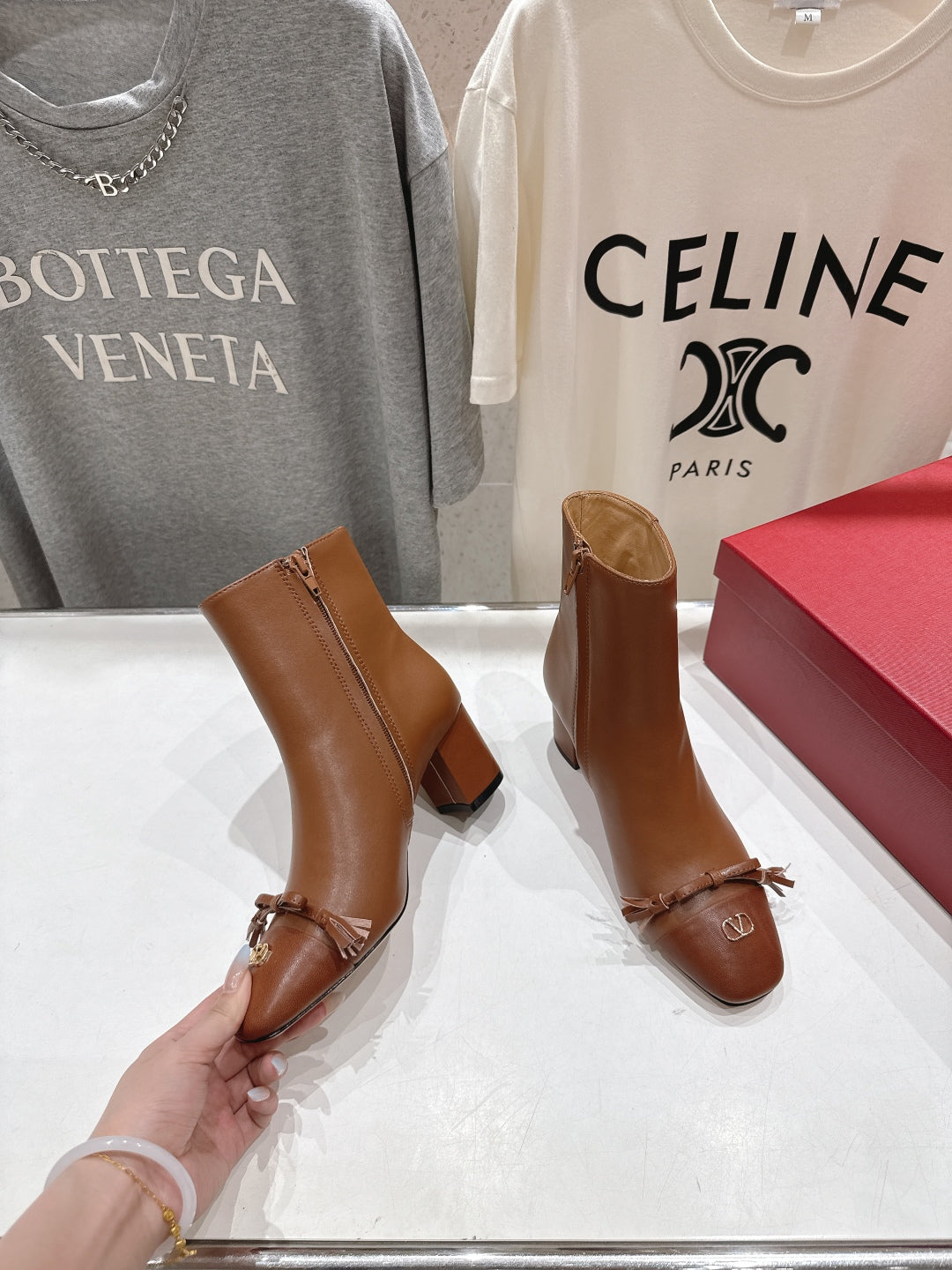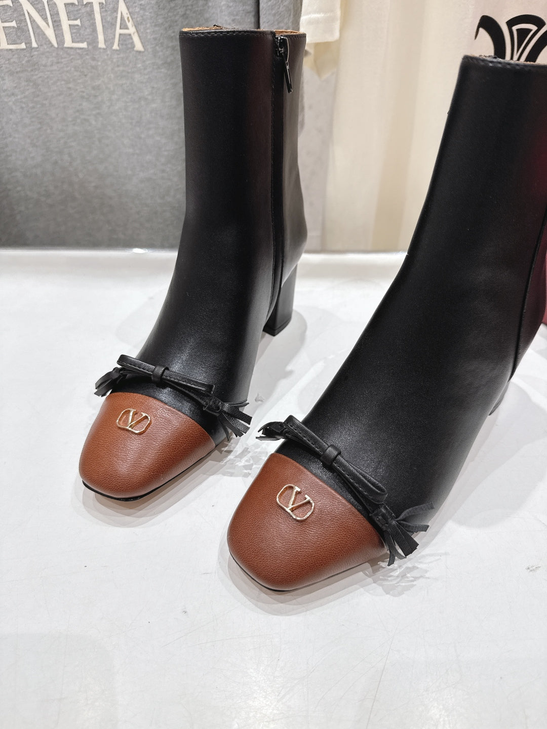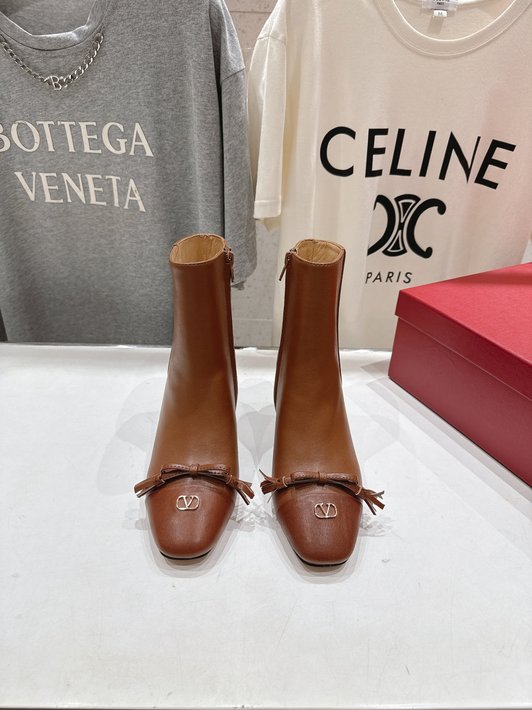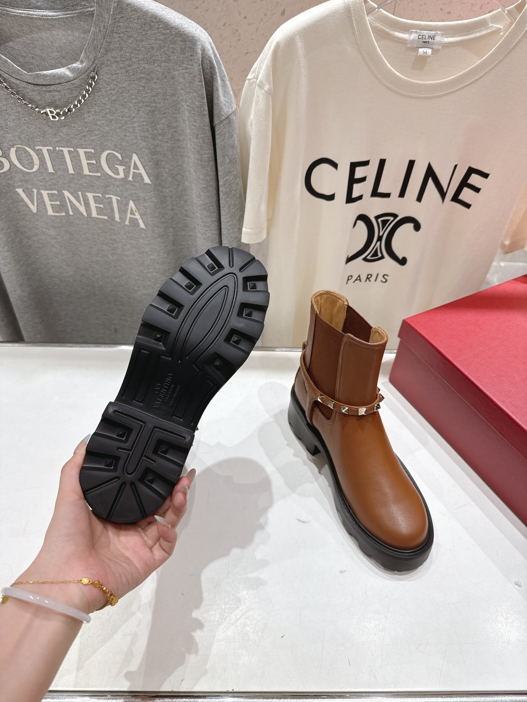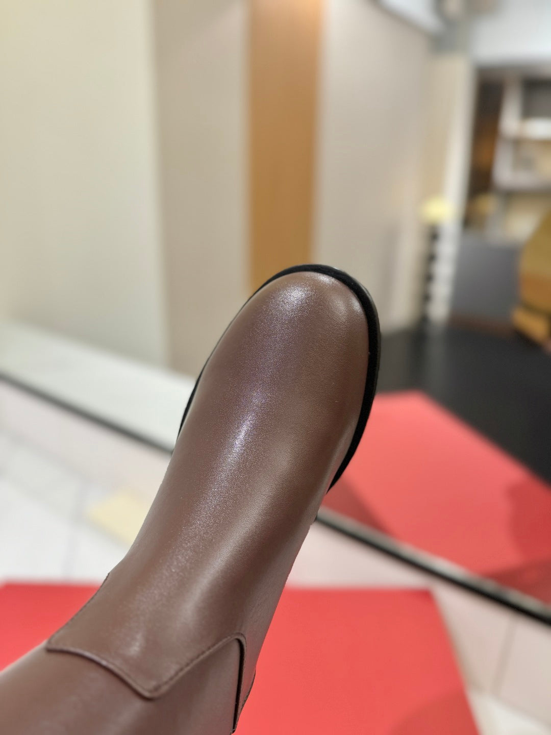 Valentino 25 Garavani Vlogo Signature Round Toe Brown Chocolate Calfskin Boots 505542