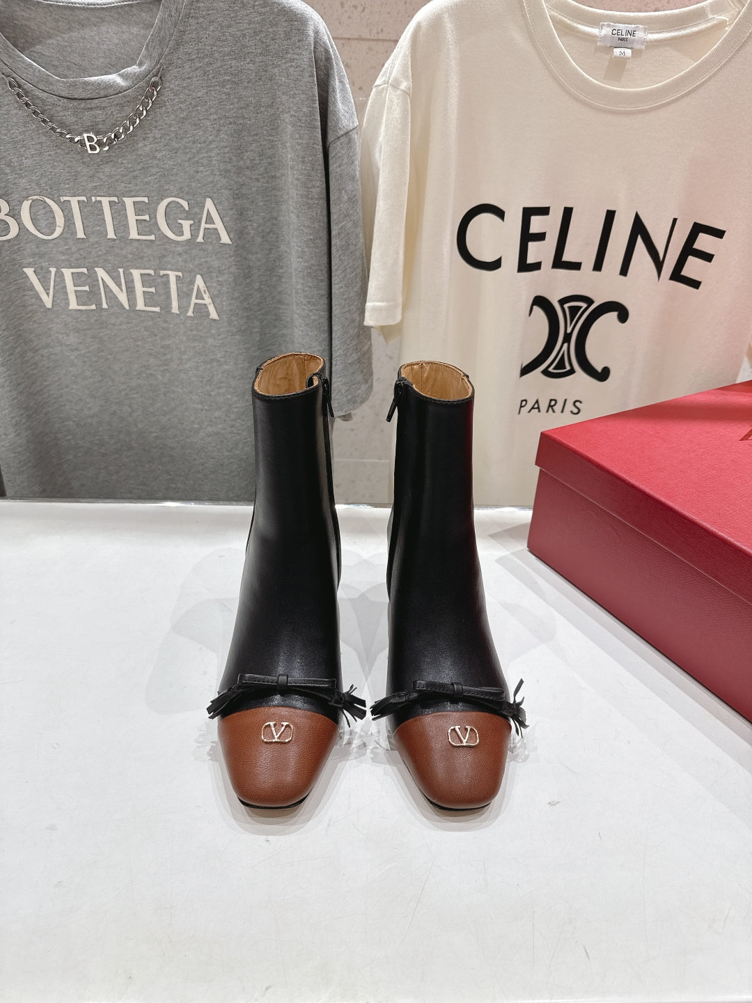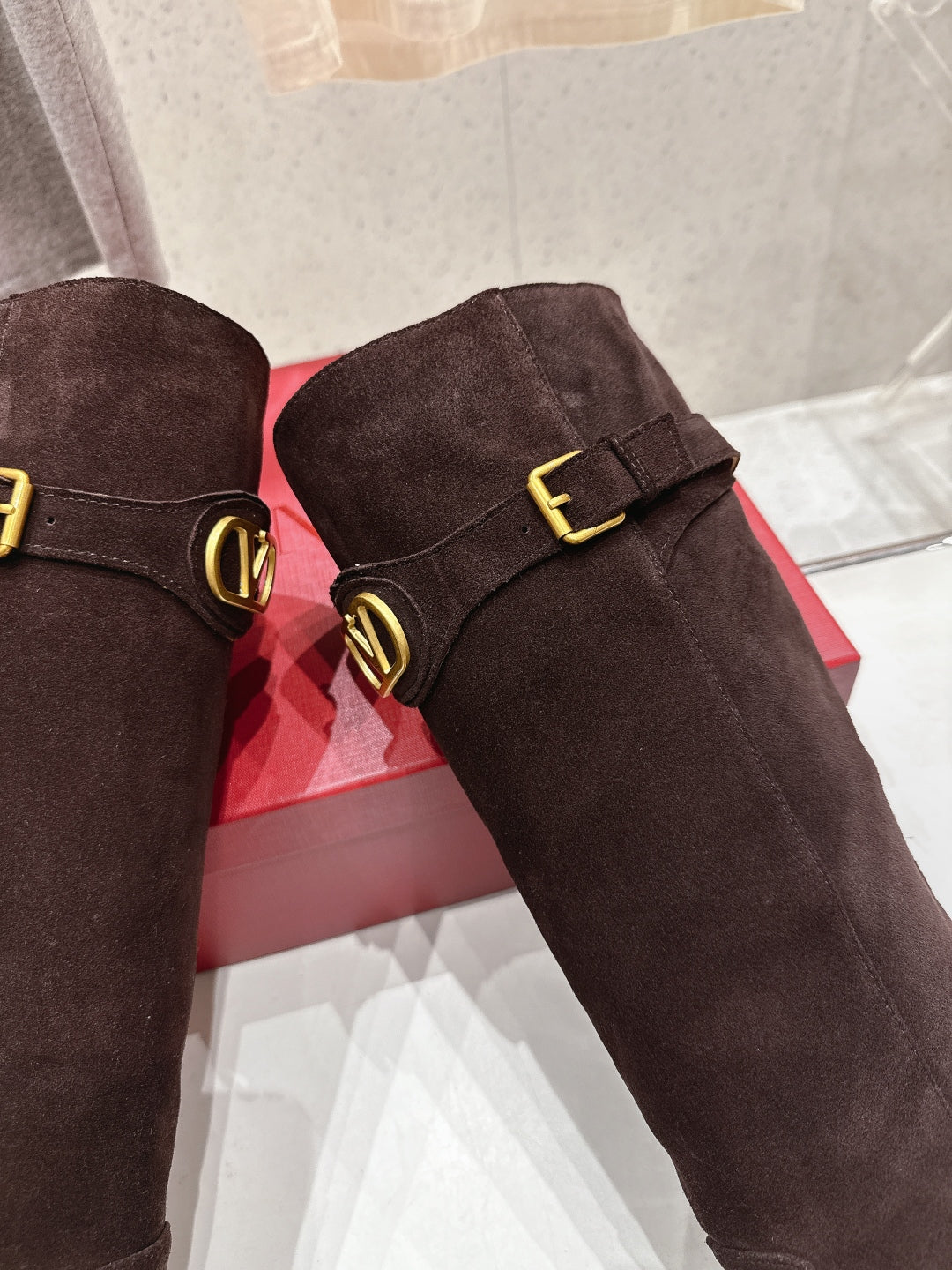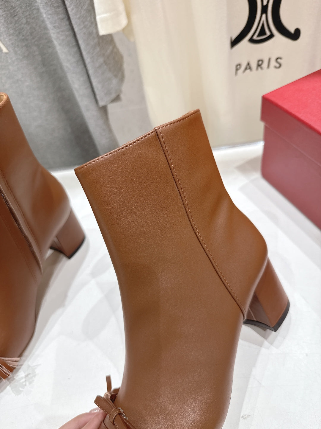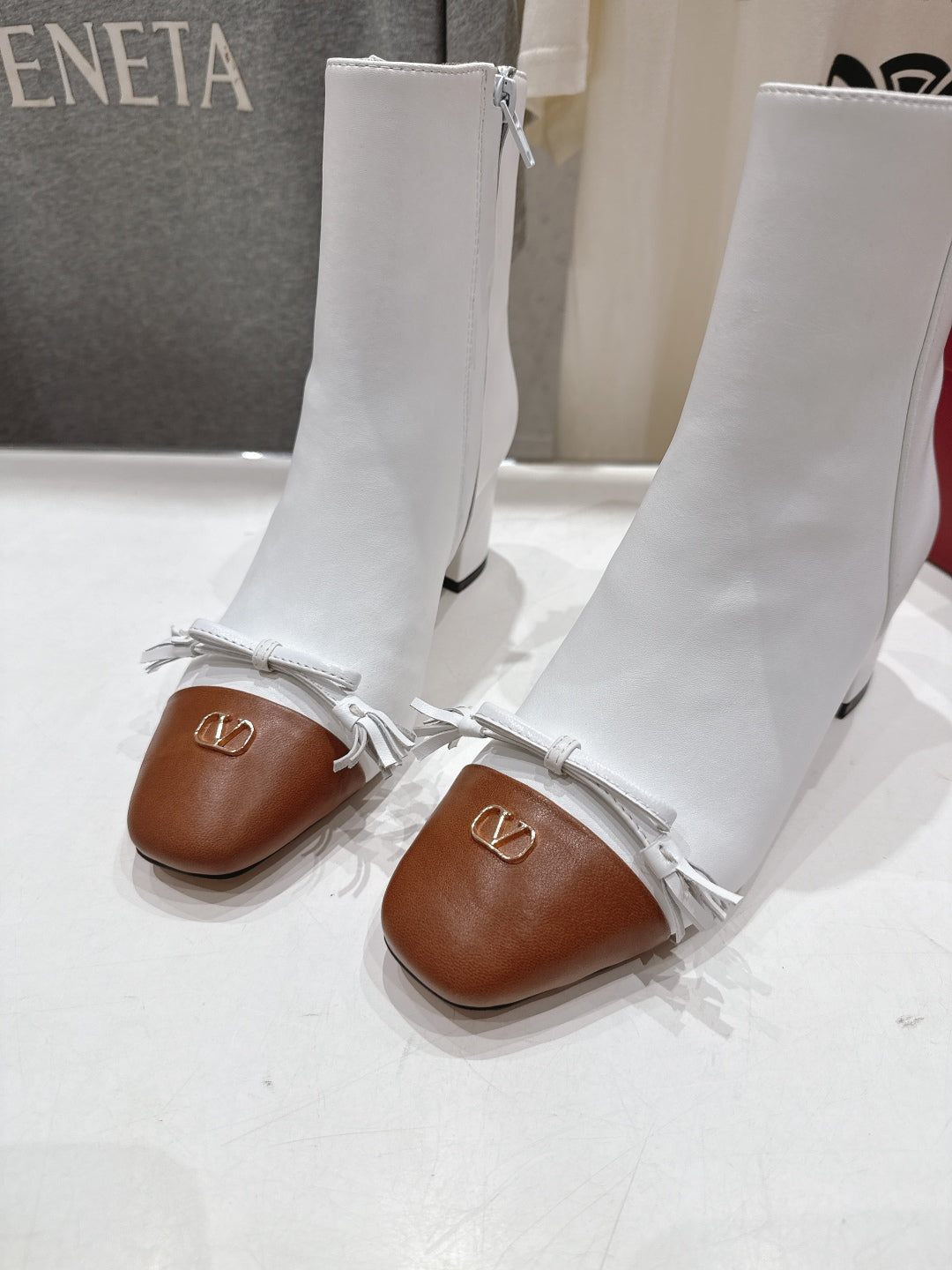 Valentino 25 Garavani Vlogo Signature Round Toe Brown Chocolate Calfskin Boots 505542