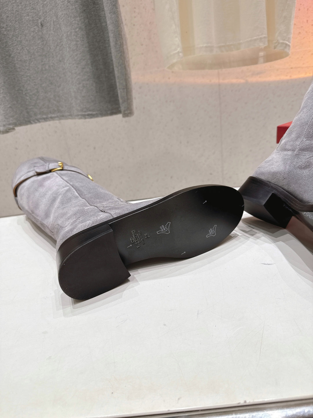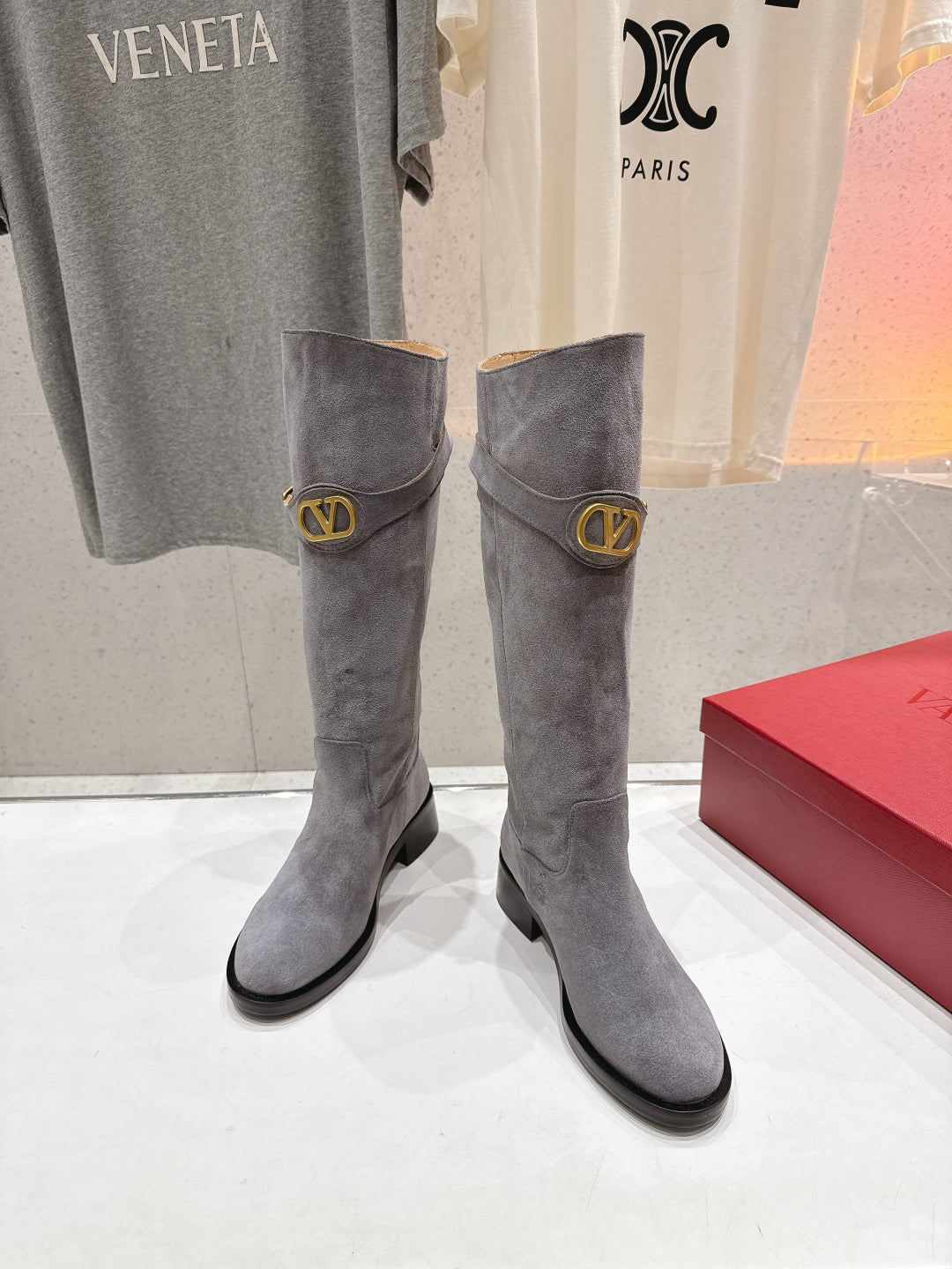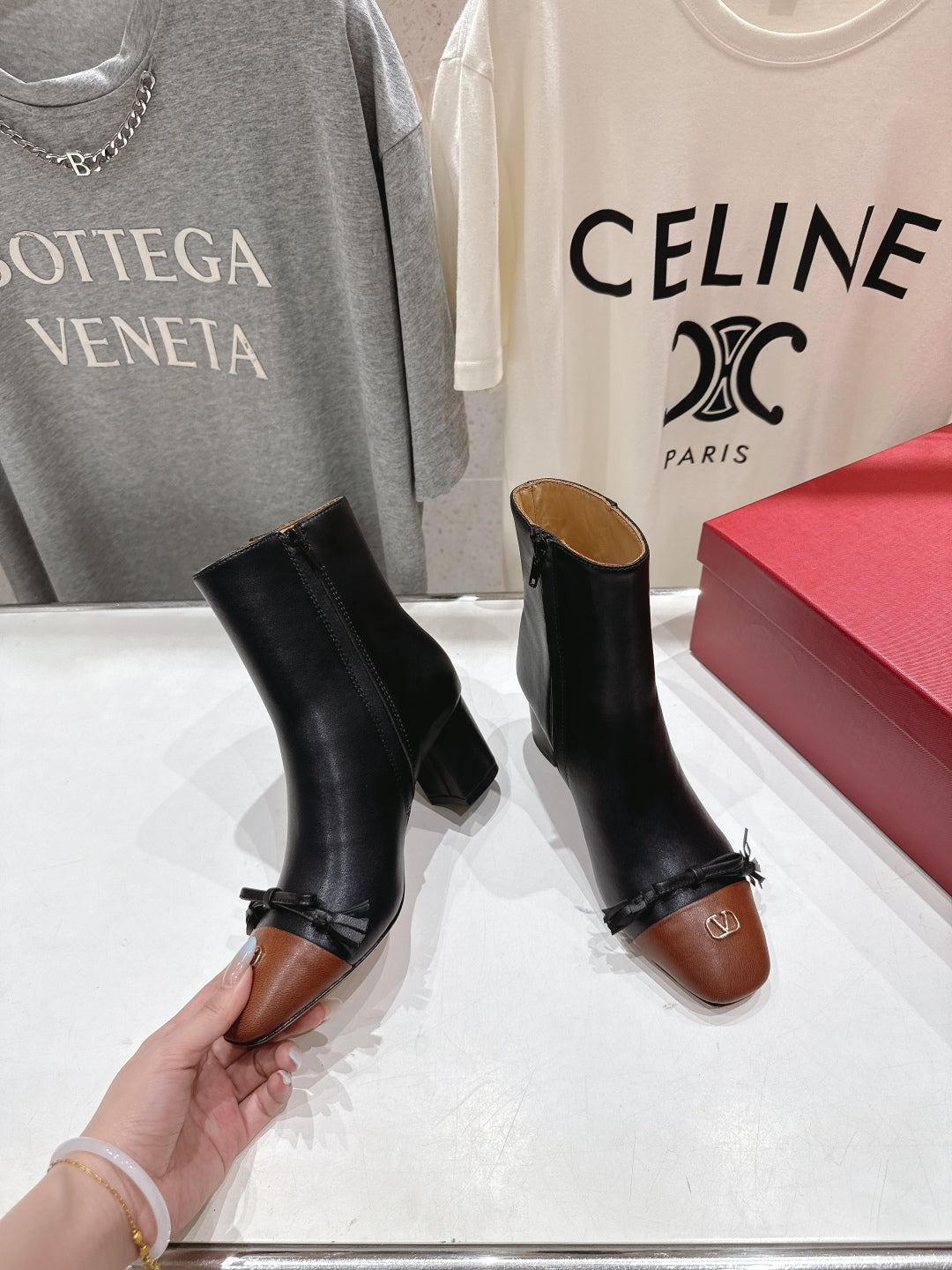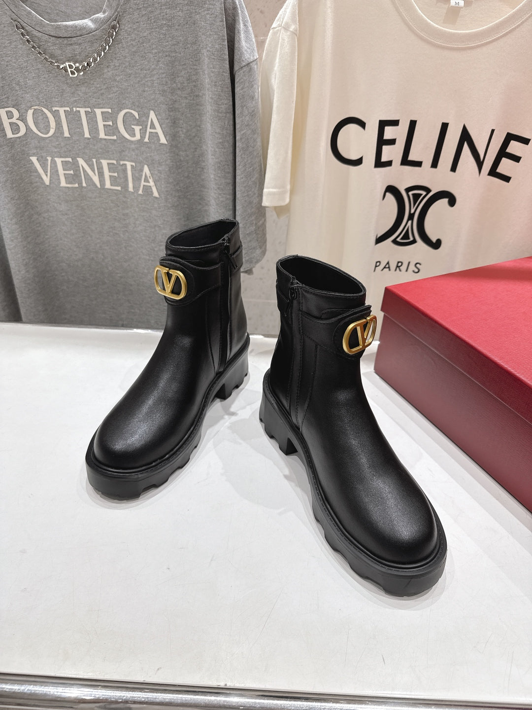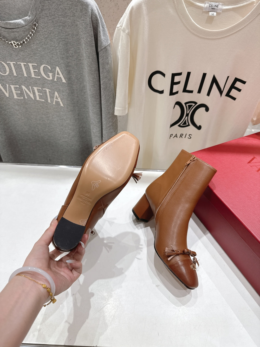 Valentino 25 Garavani Vlogo Signature Round Toe Brown Chocolate Calfskin Boots 505542