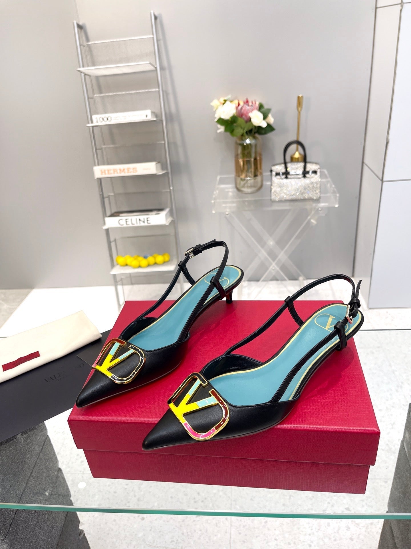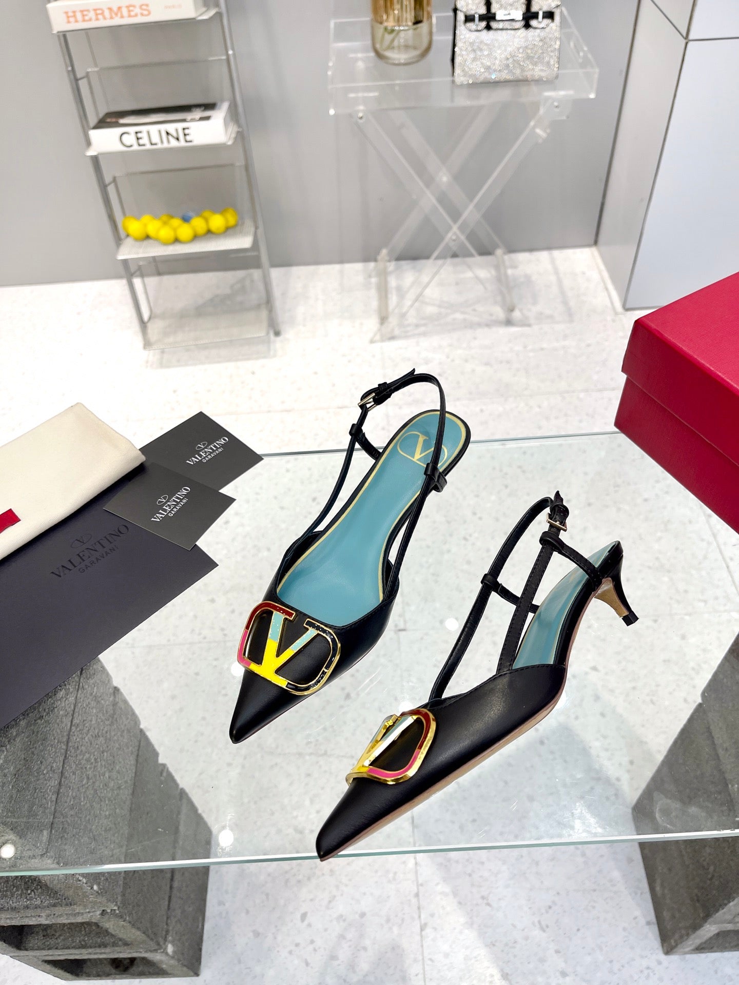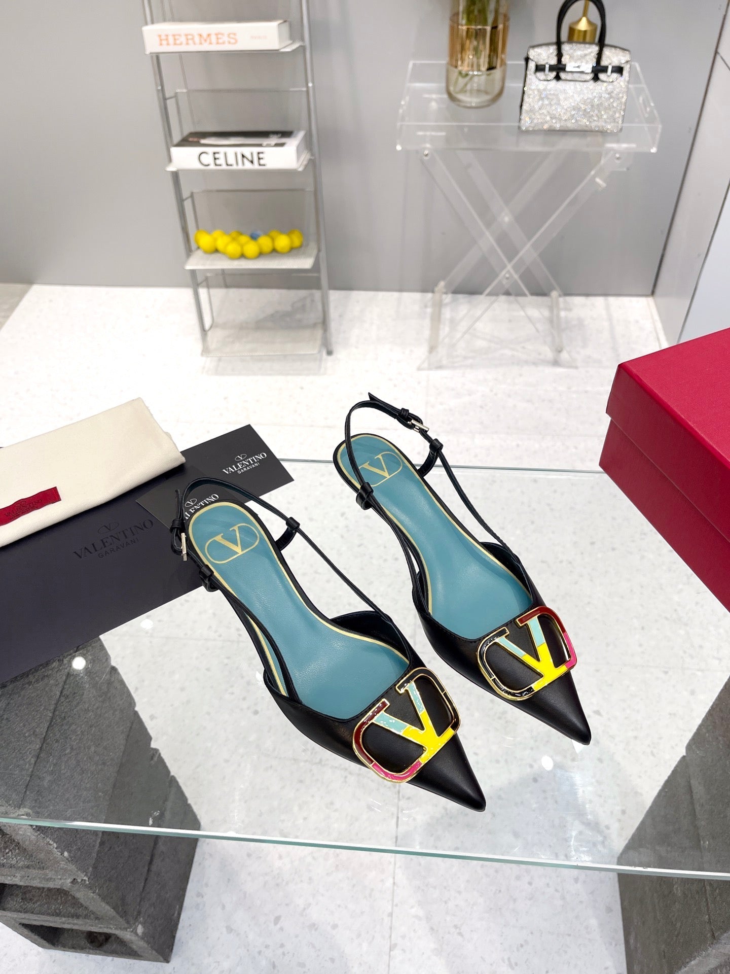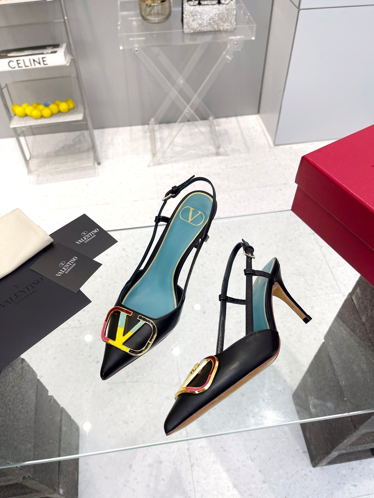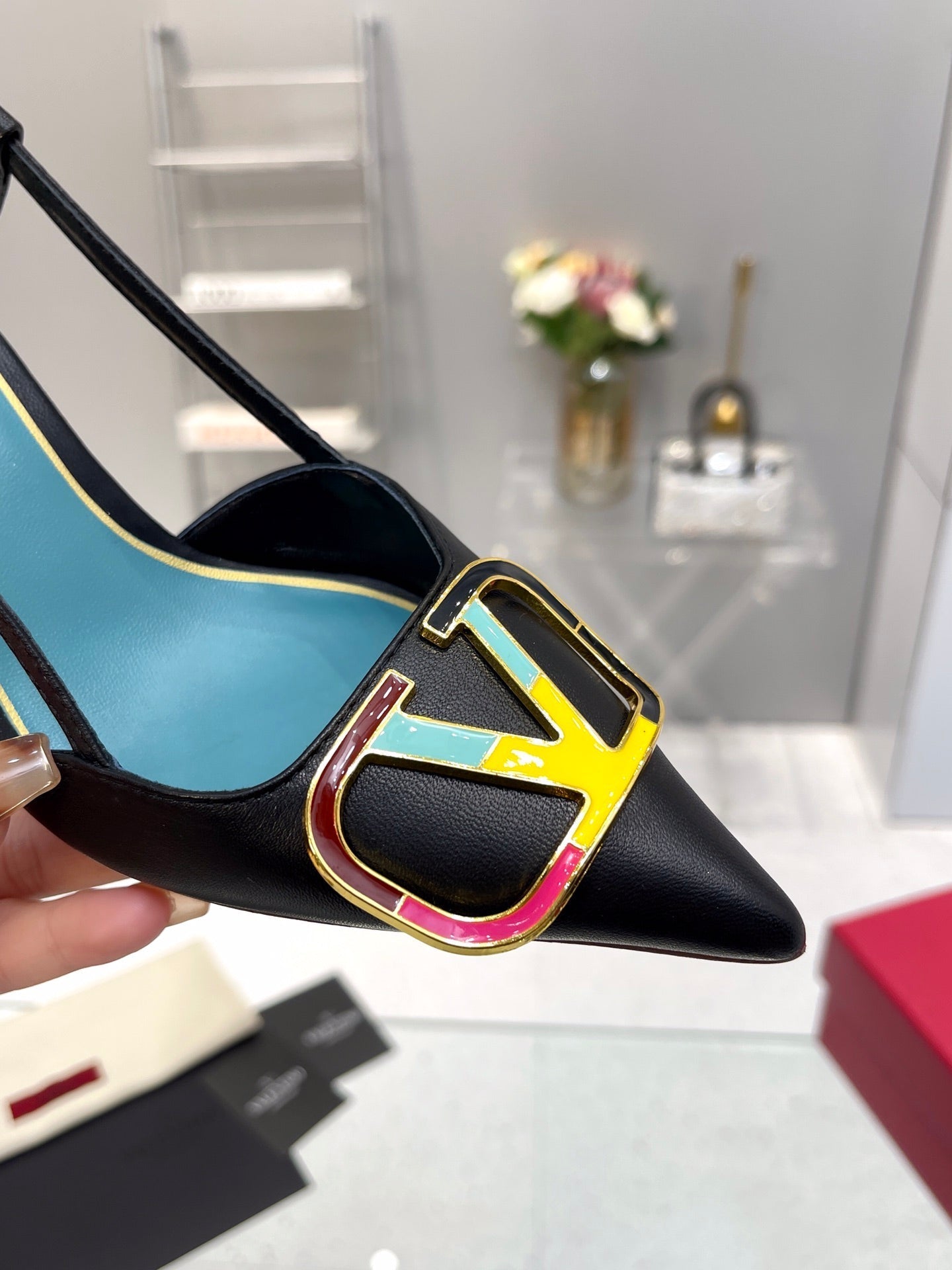 VT Vlogo Signature 75mm Black Slingback Sheepskin