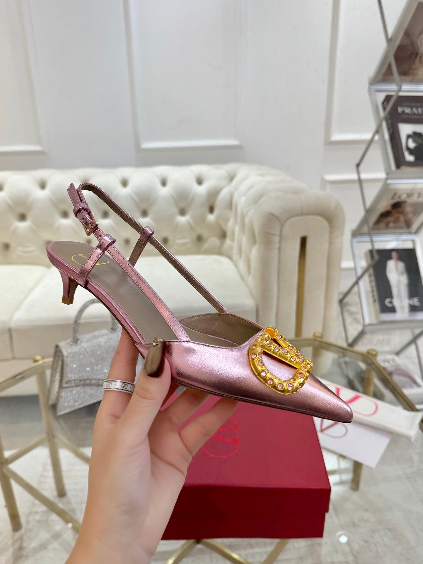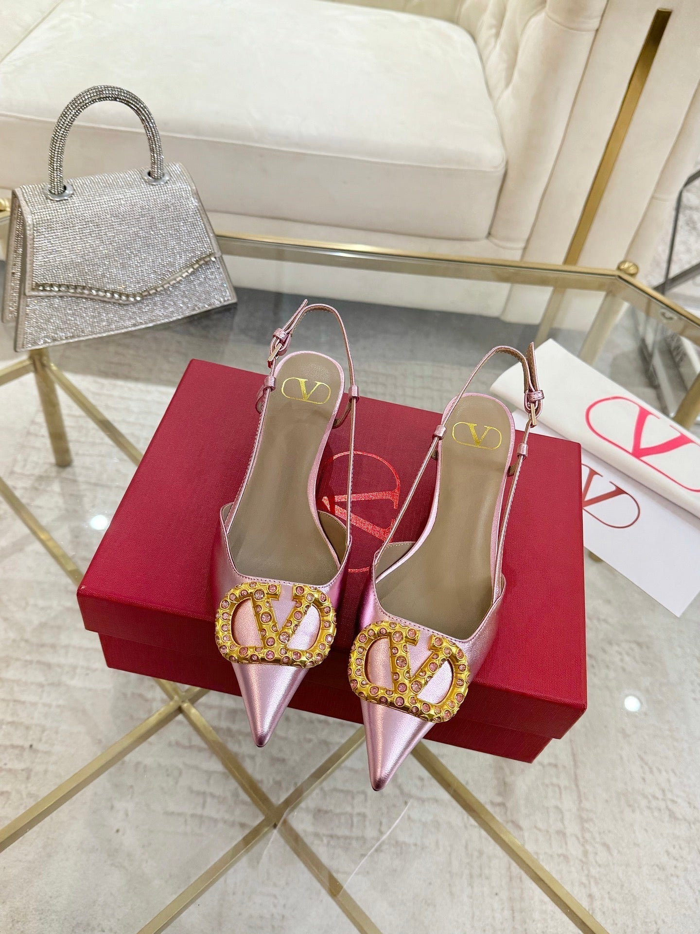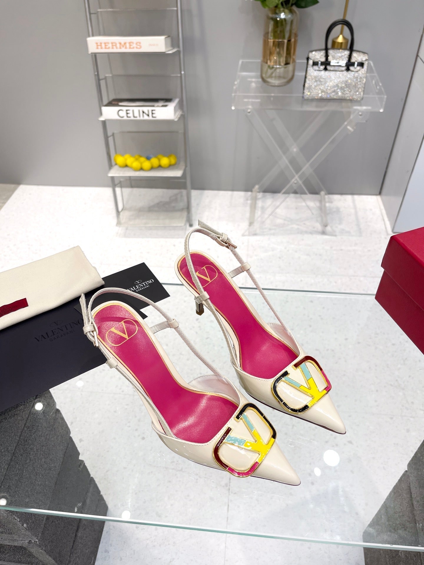 VT Vlogo Signature 75mm Pink White Slingback Sheepskin