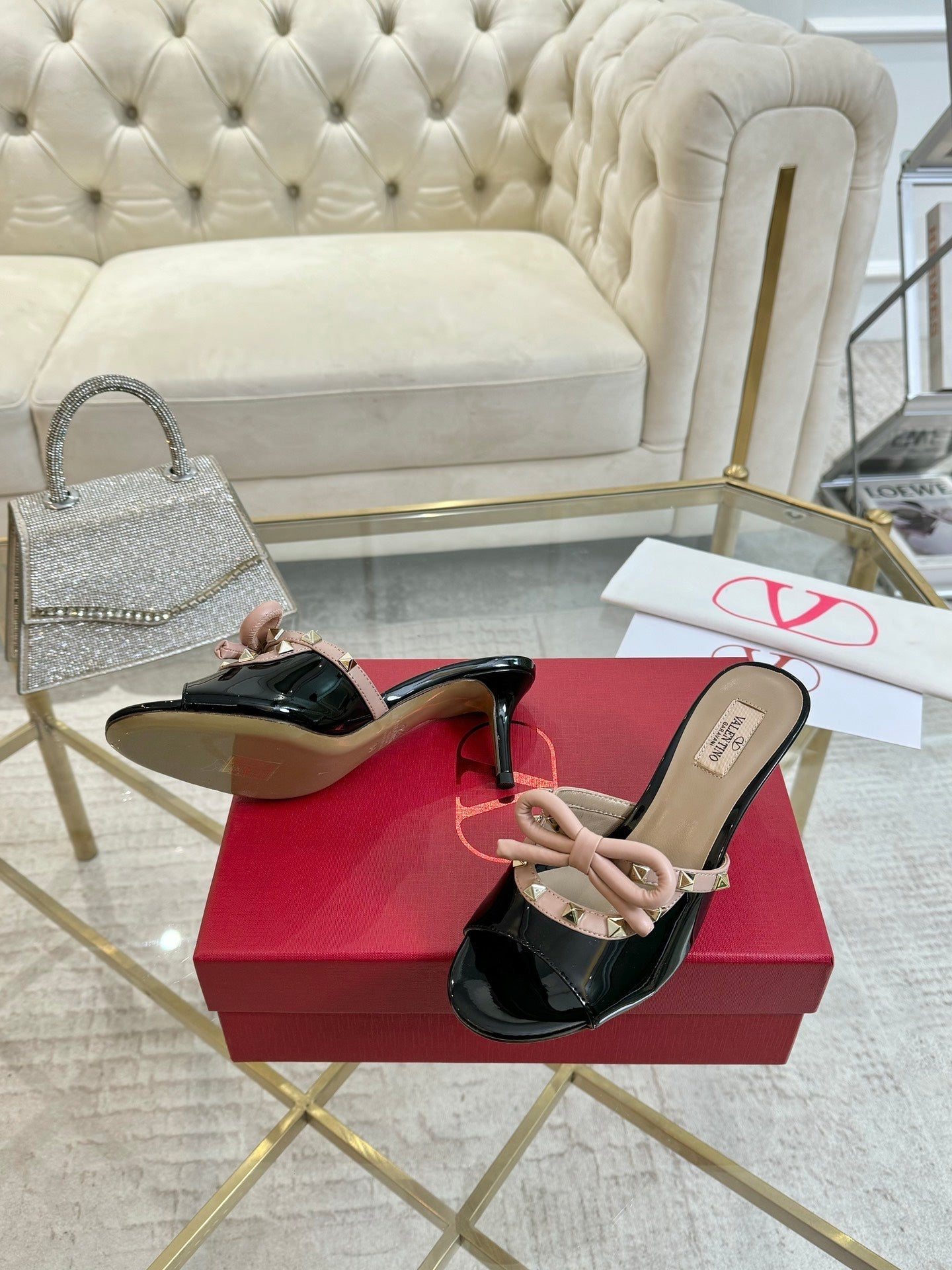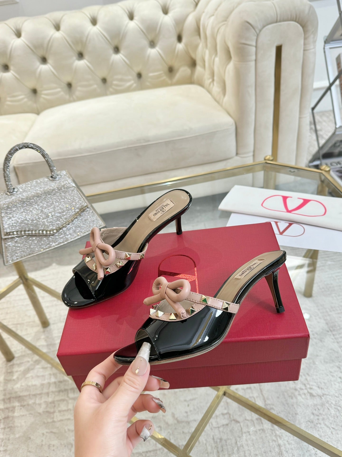 VT 25 Rockstud Bow Mule Black Patent Leather 342075