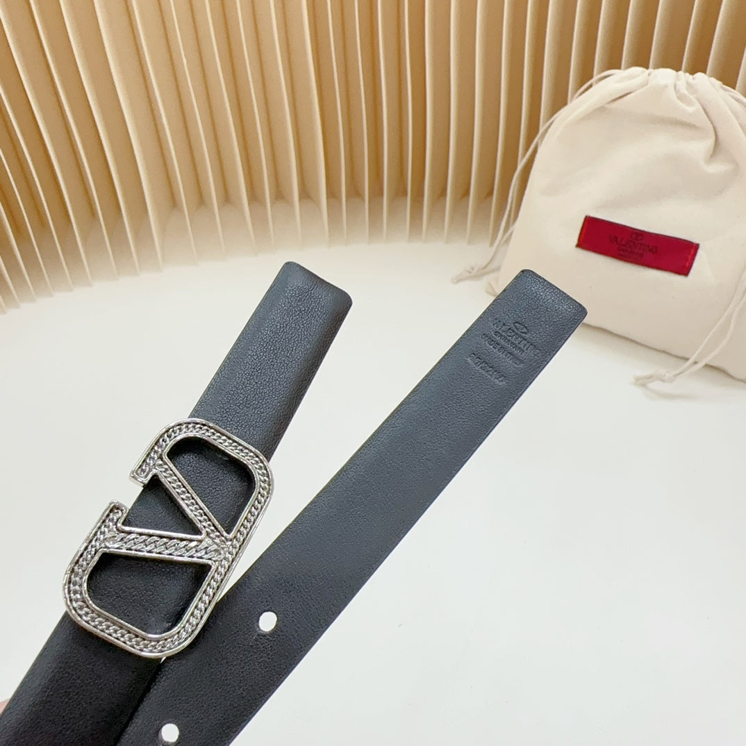 Vlogo Buckle Water Wave Silver Copper Glossy White Black Leather 20mm Belt