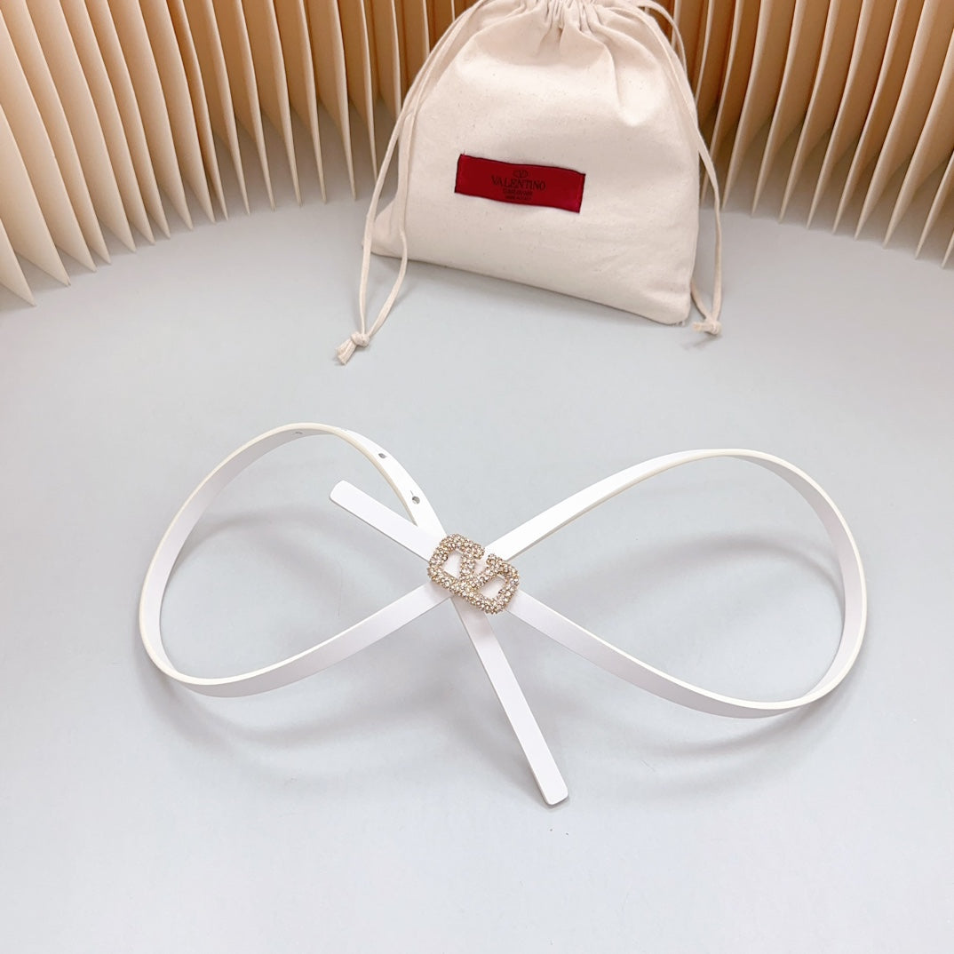 VL Belt 8mm Buckle Silver Diamond Leather White Black