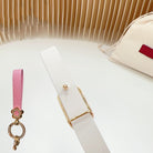 Gold Vlogo and Silver Hardware Buckle Gold White Calfskin 20mm