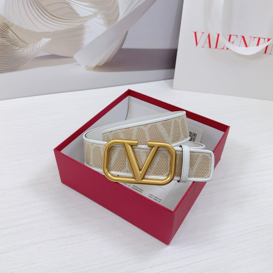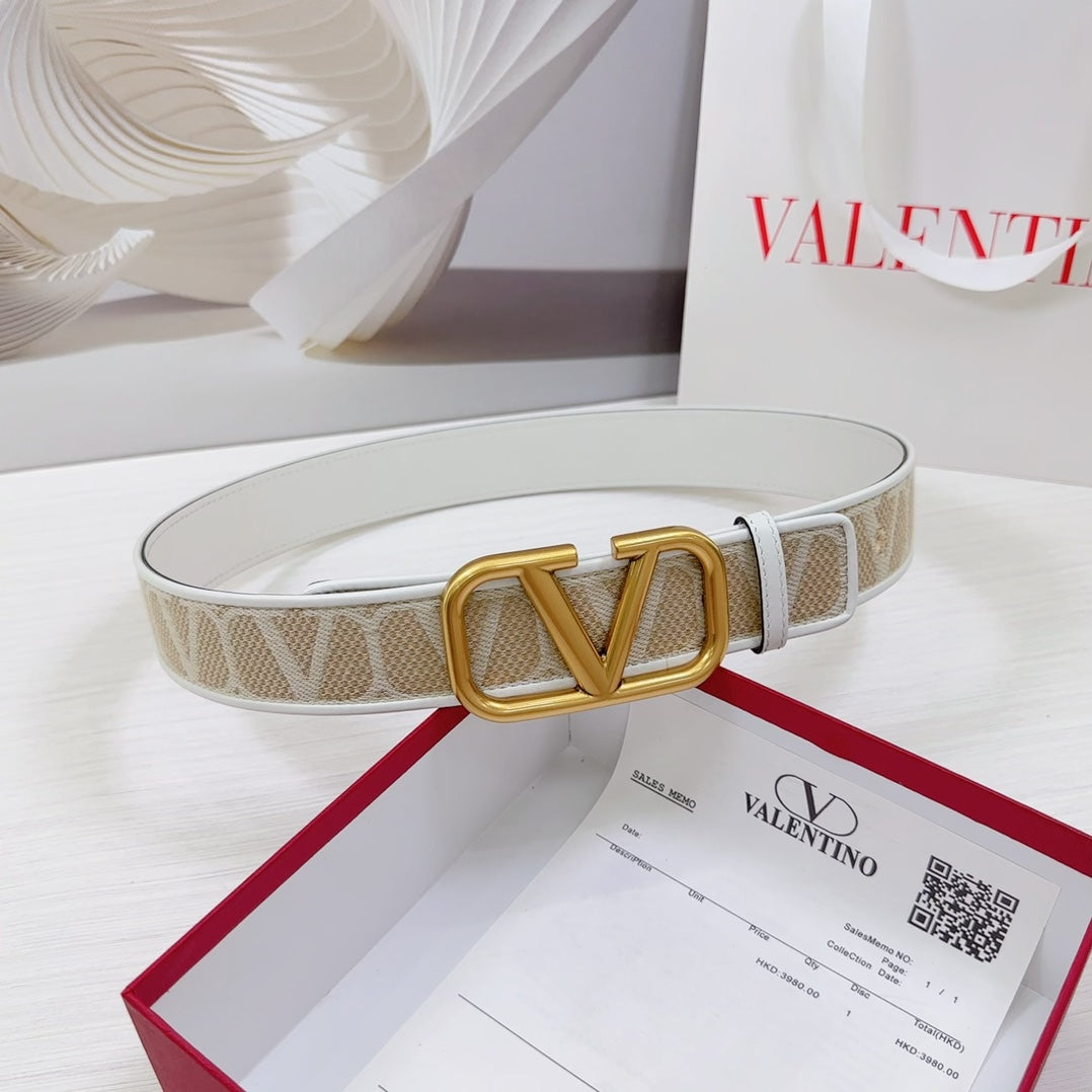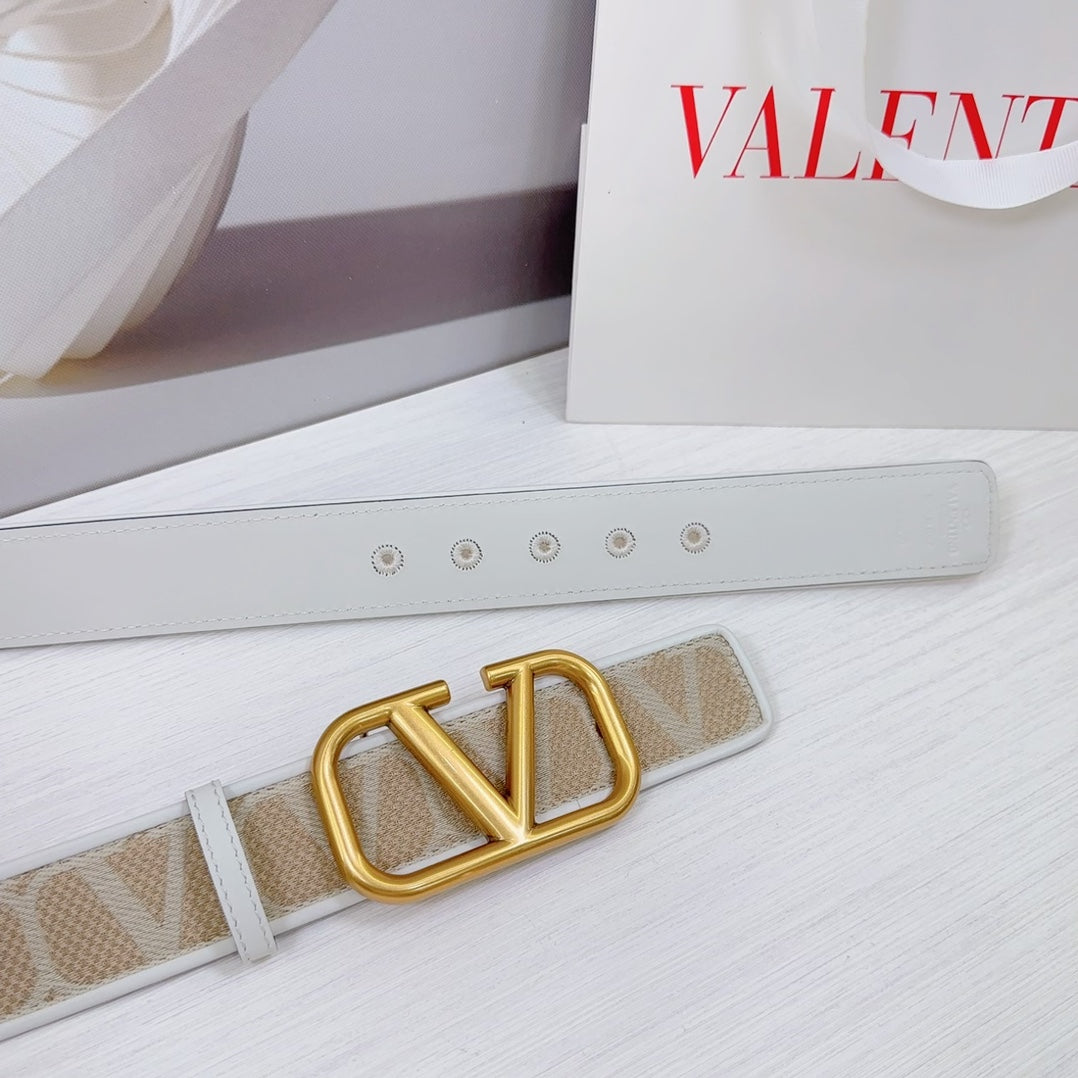 Valenti Toilde Iconographe Belt 40mm White Beige Calfskin Gold Buckle