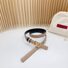 Vlogo Buckle Water Wave Gold Copper Glossy Beige Black Leather 20mm Belt