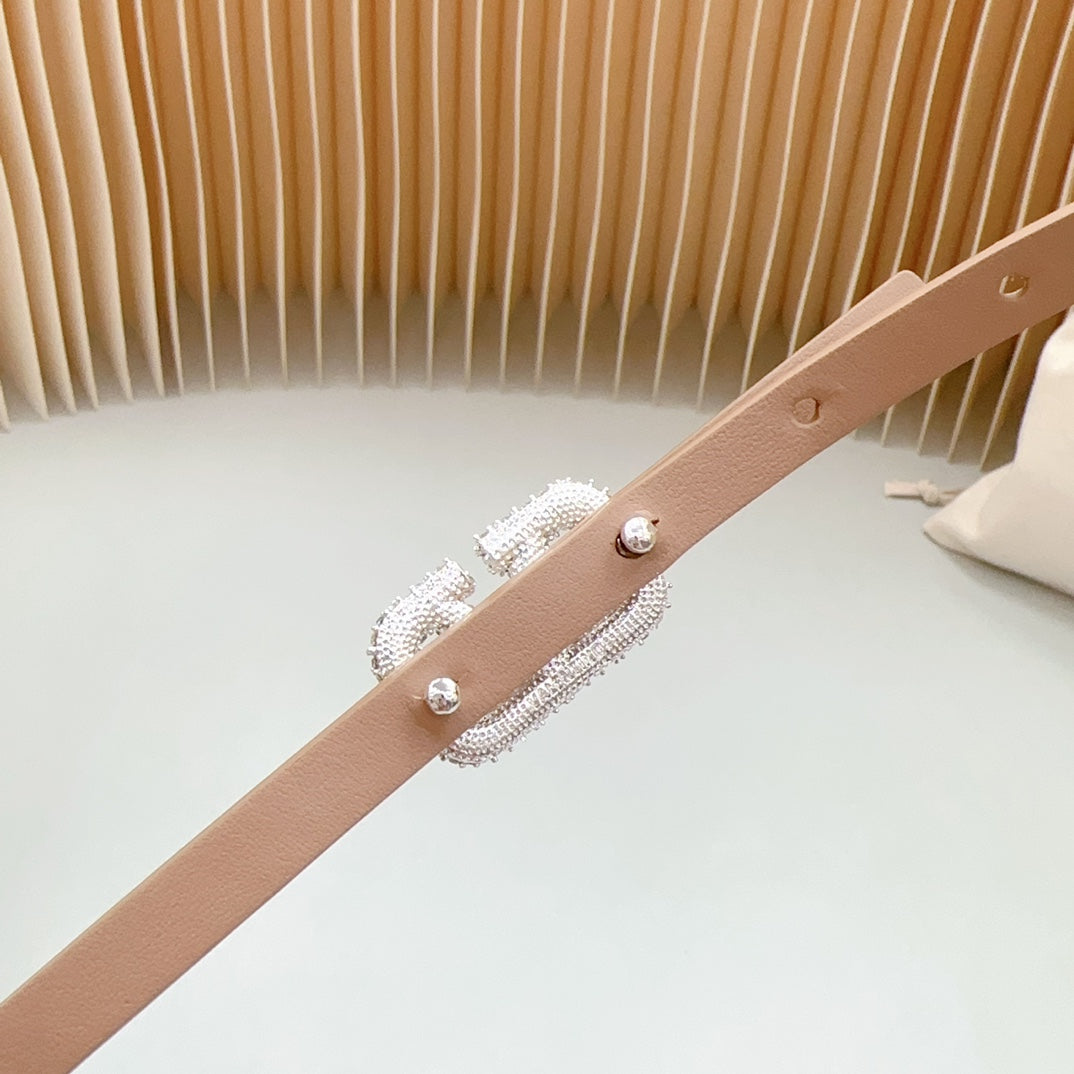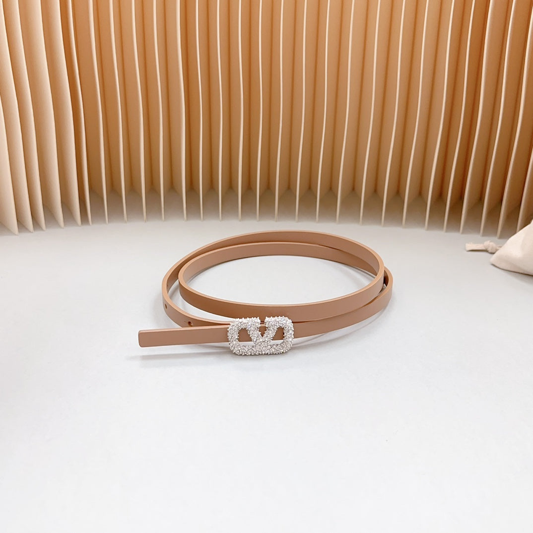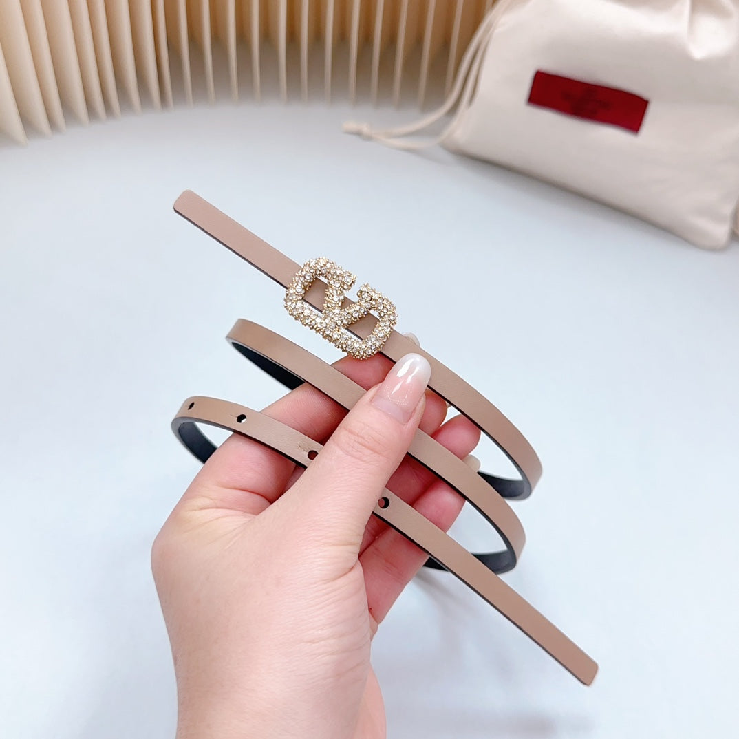 VL Belt 8mm Buckle Gold Diamond Leather Beige Black