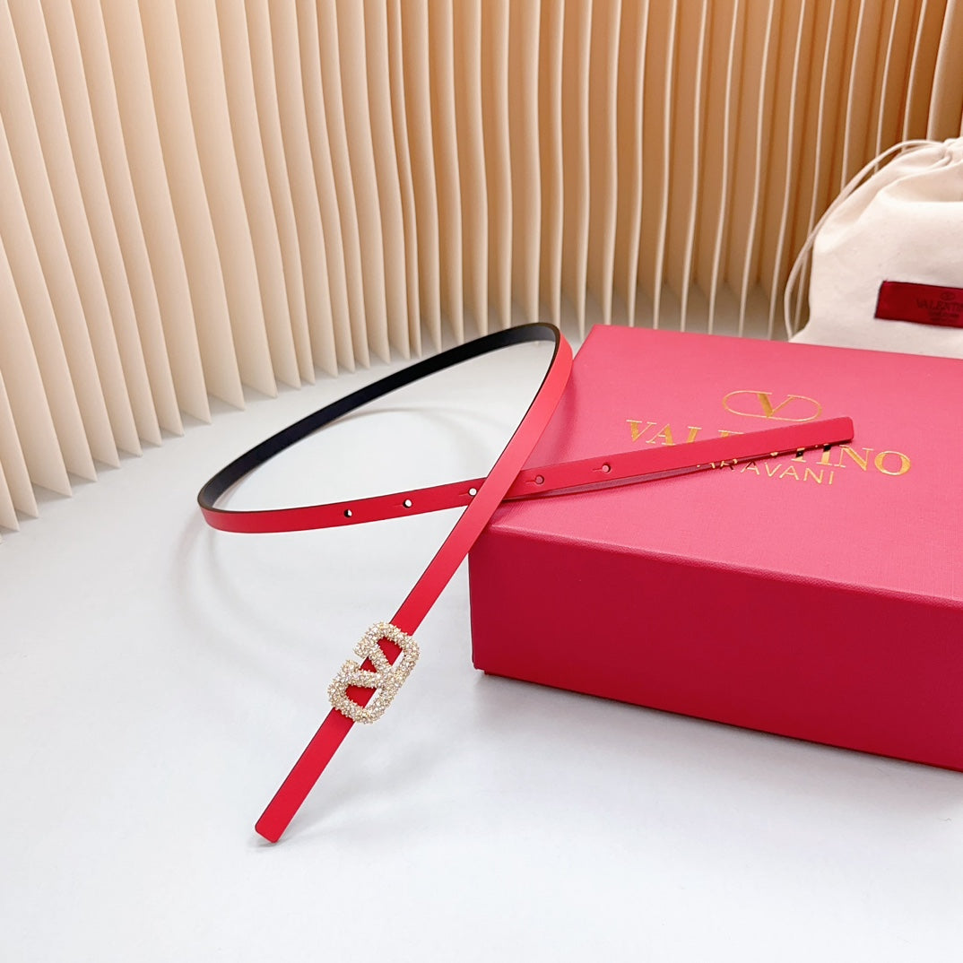 VL Belt 8mm Buckle Silver Diamond Leather Red