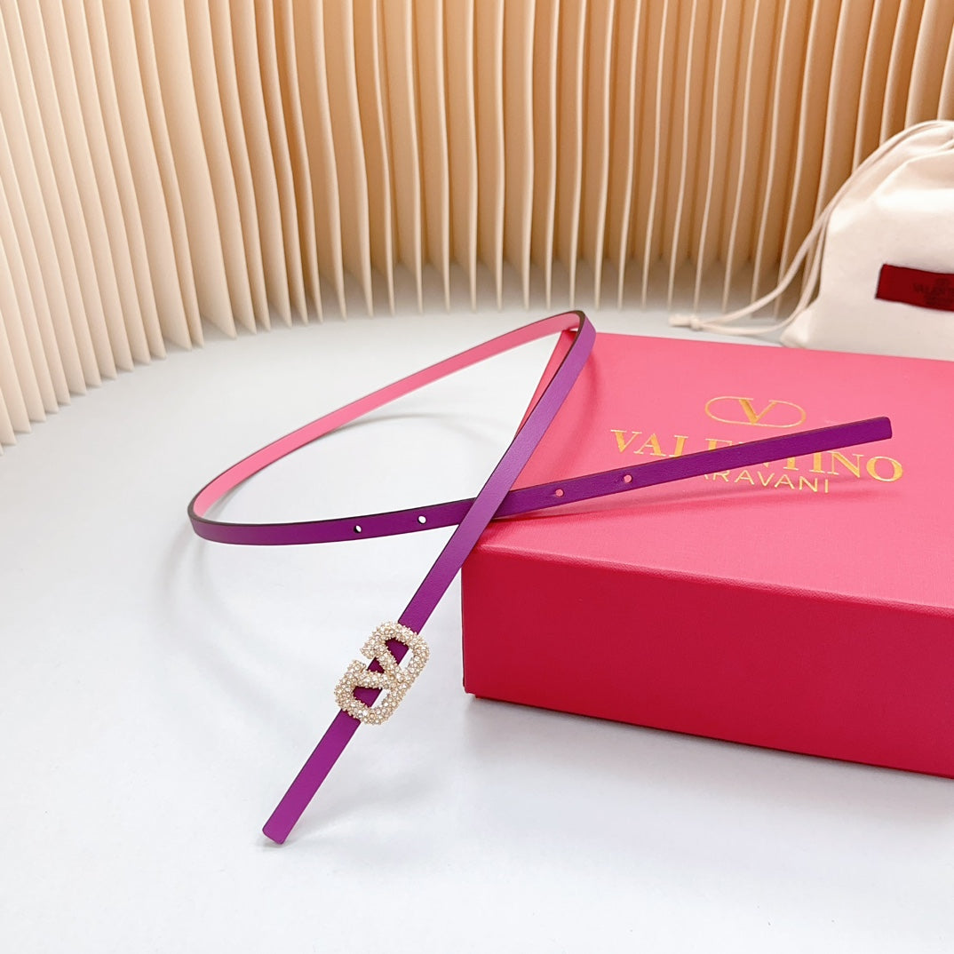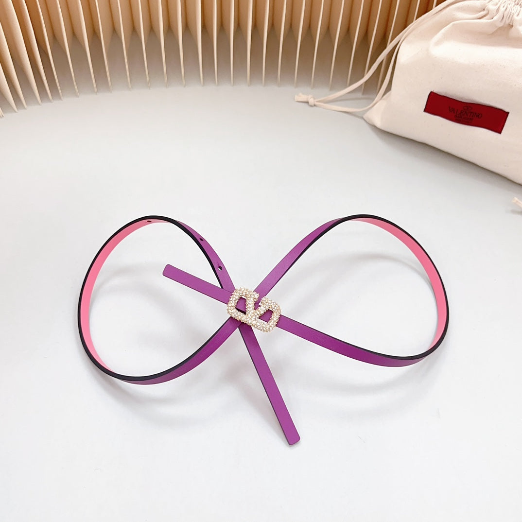 VL Belt 8mm Buckle Gold Diamond Leather Pink Purple