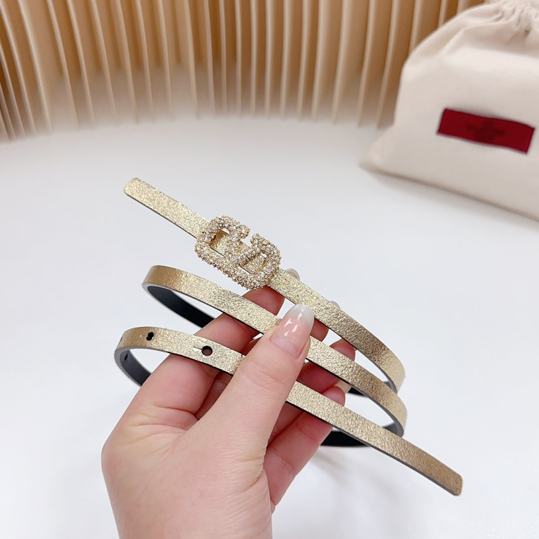 VL Belt 8mm Buckle Gold Diamond Leather Gold Black