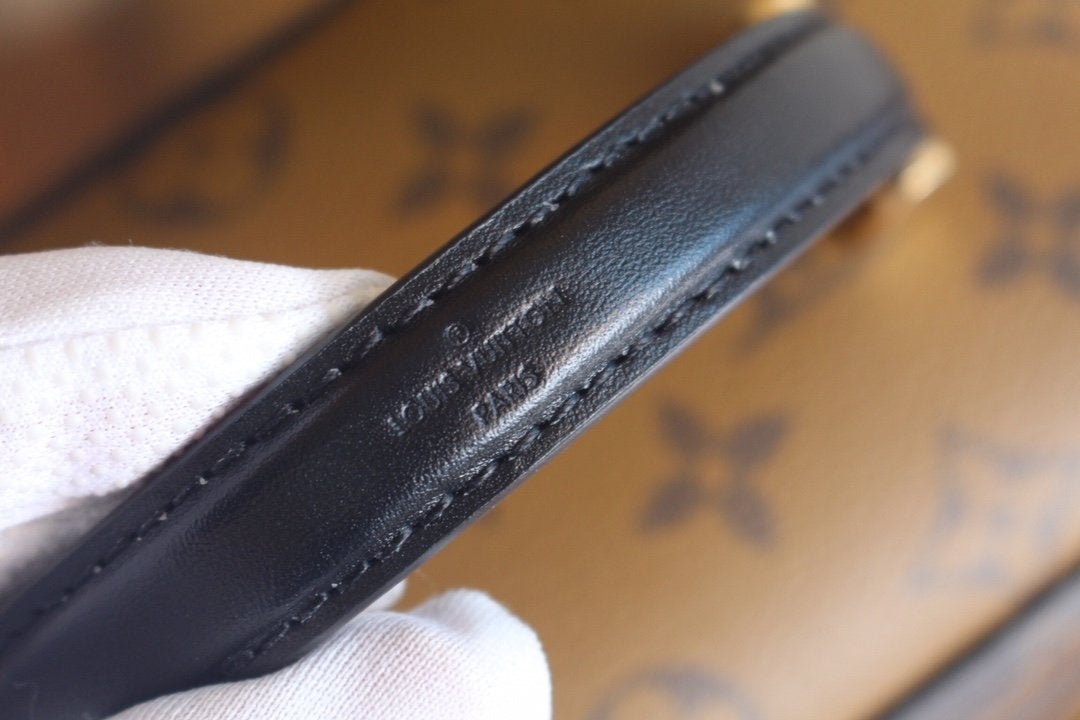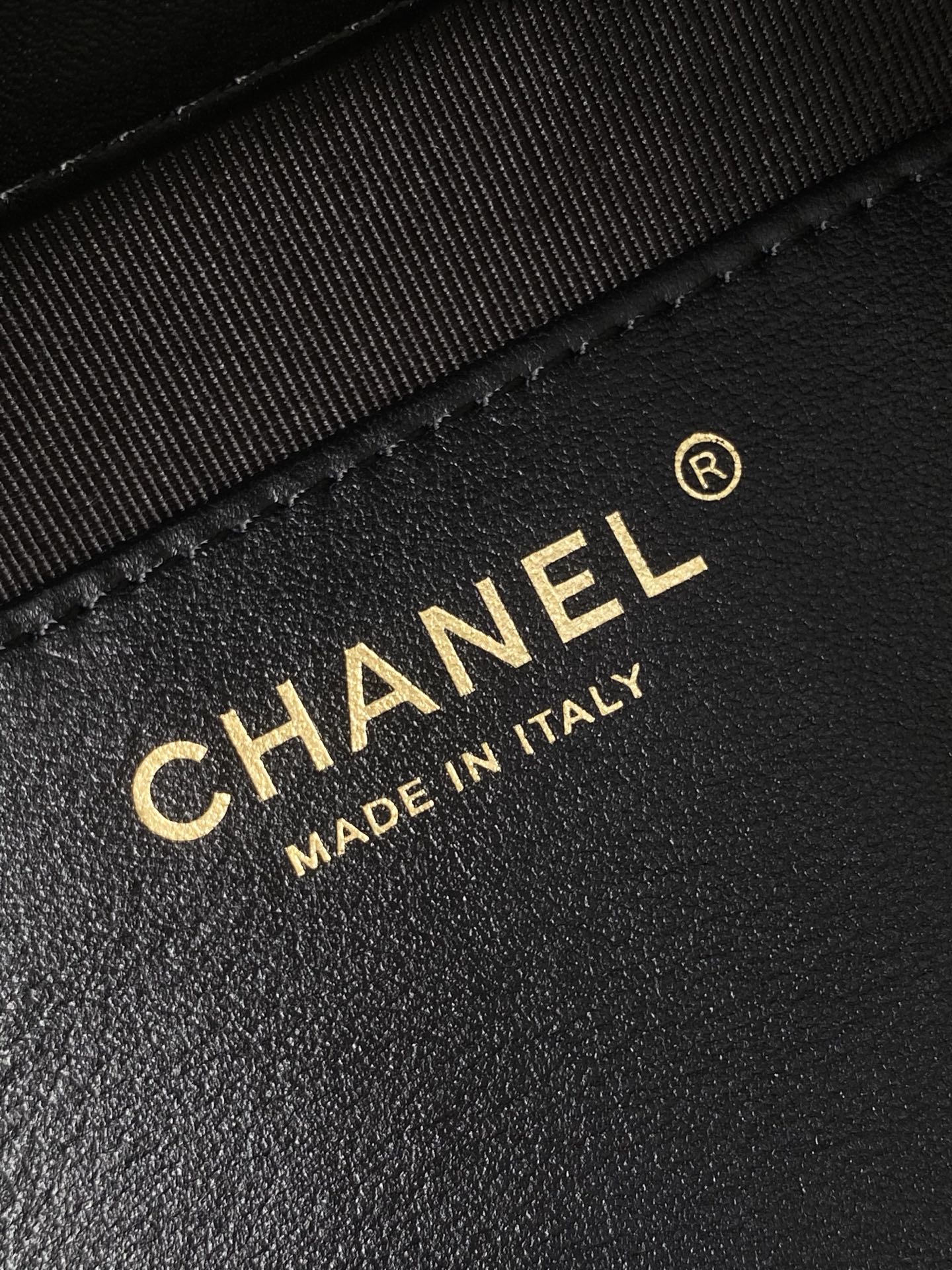CC 25C Vanity Top Handle 21cm Black Grained Calfskin Light Gold Hardware