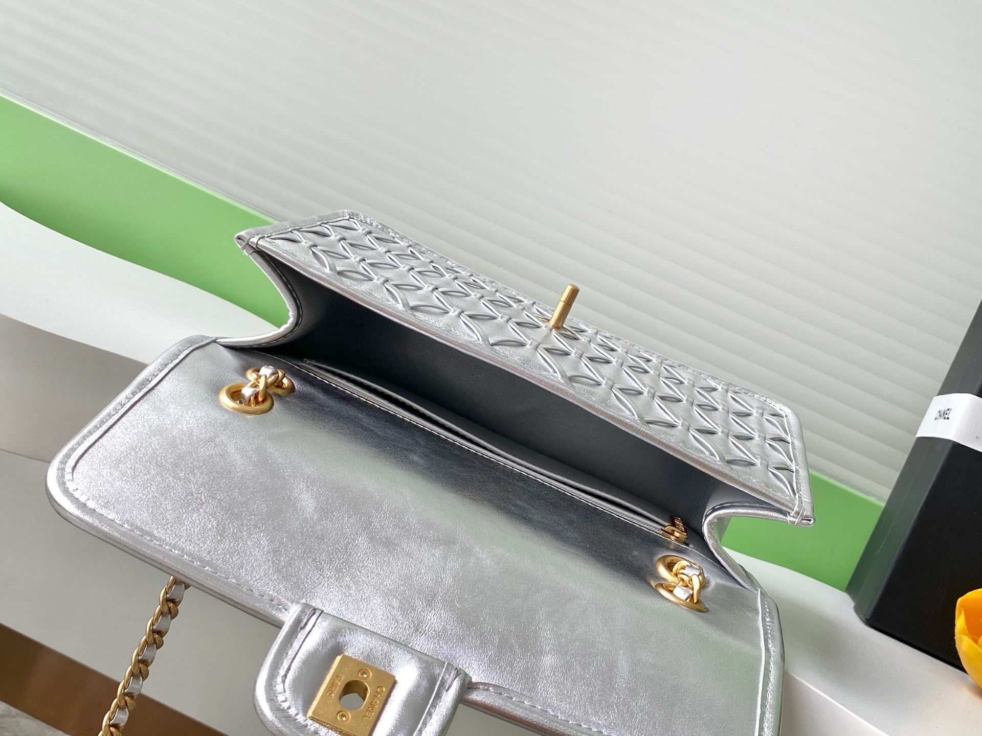 CC 25C Flap Bag 19cm Silver Metalic Quilted Lambskin