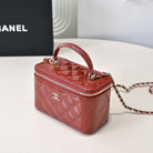 CC 24P Vanity Top Handle 16.5cm Black Patent Calfskin Light Gold Hardware
