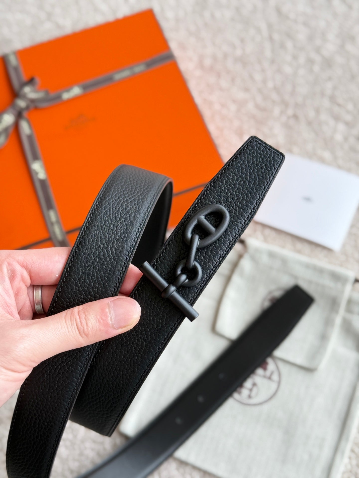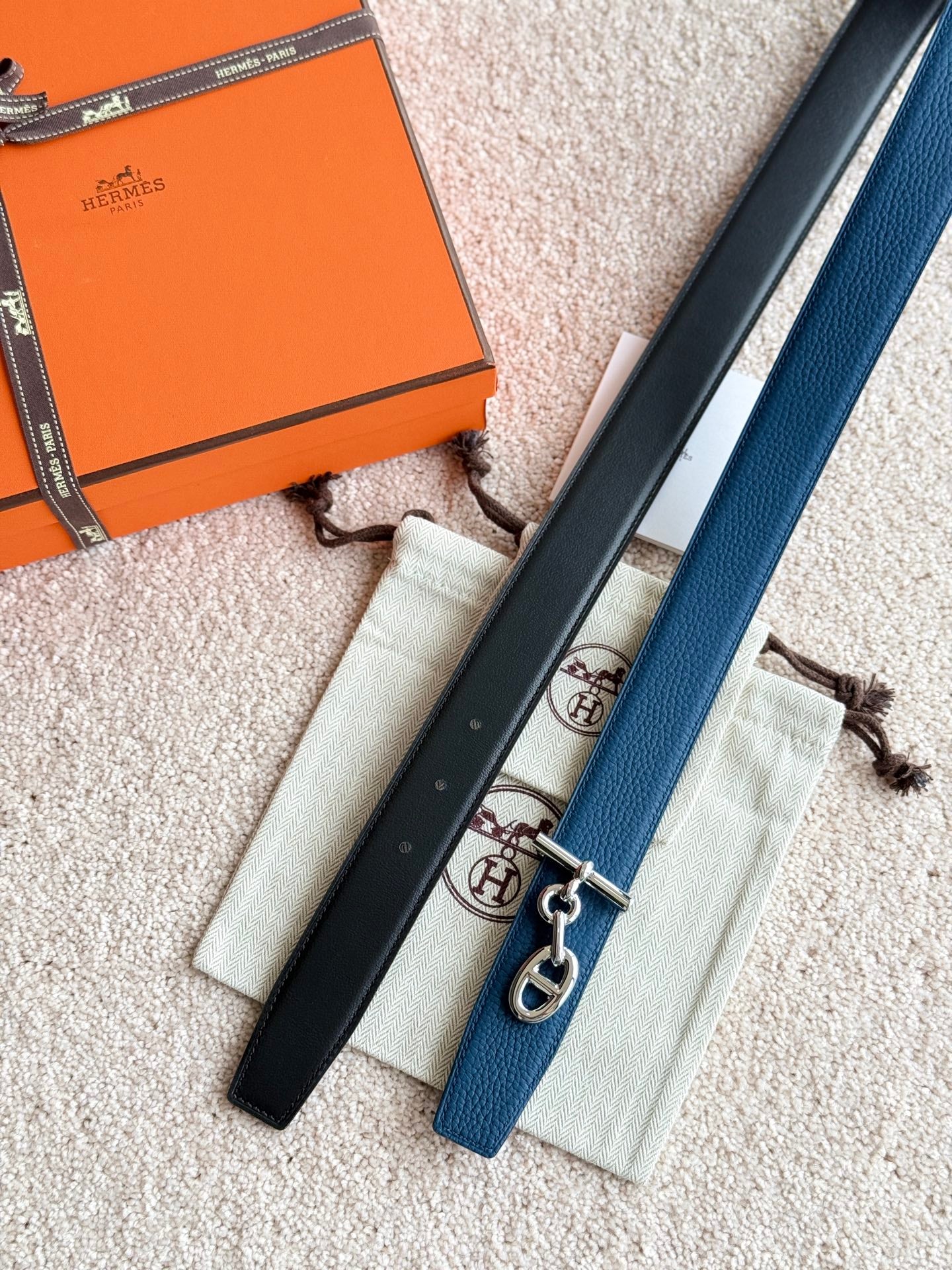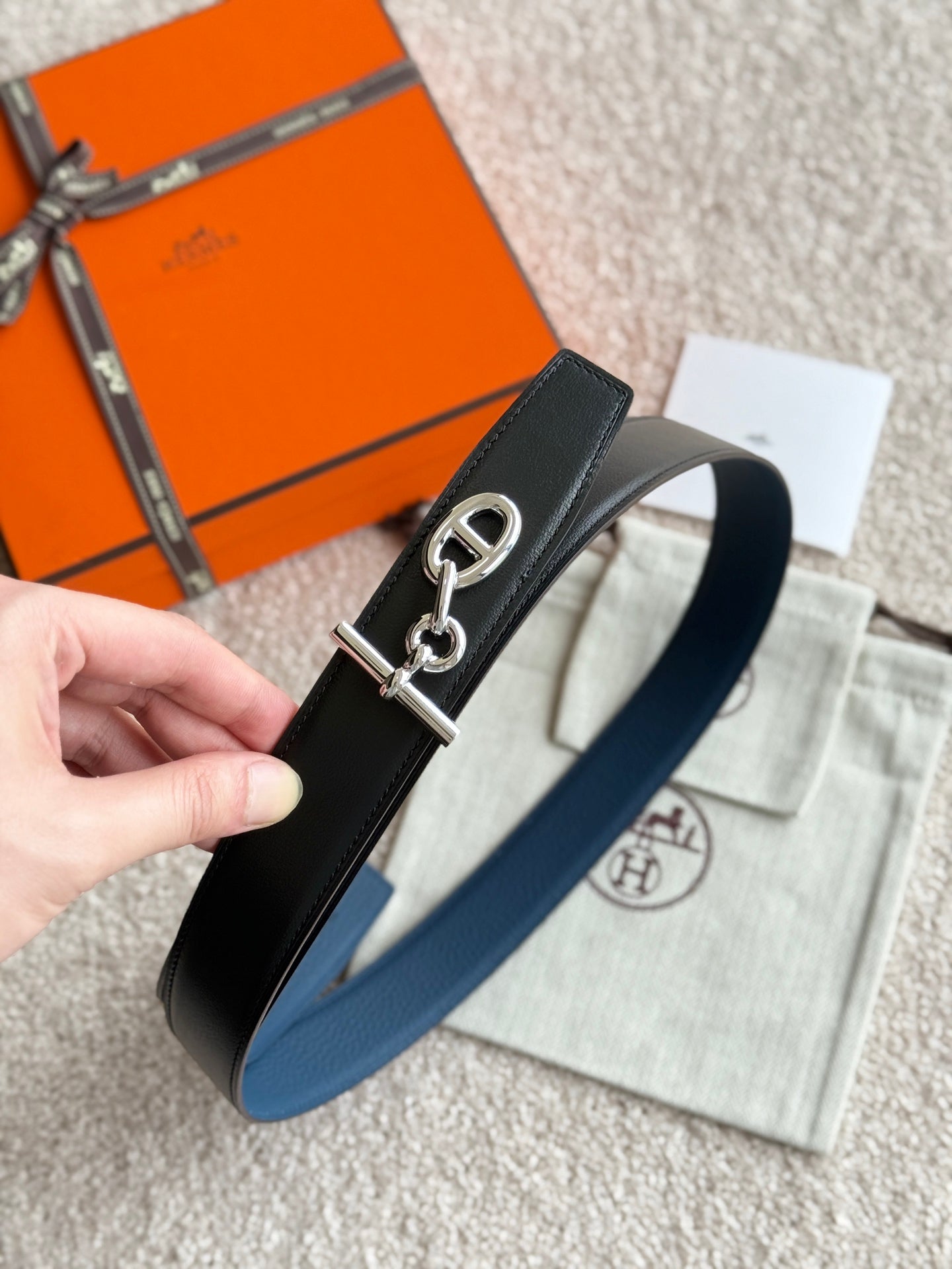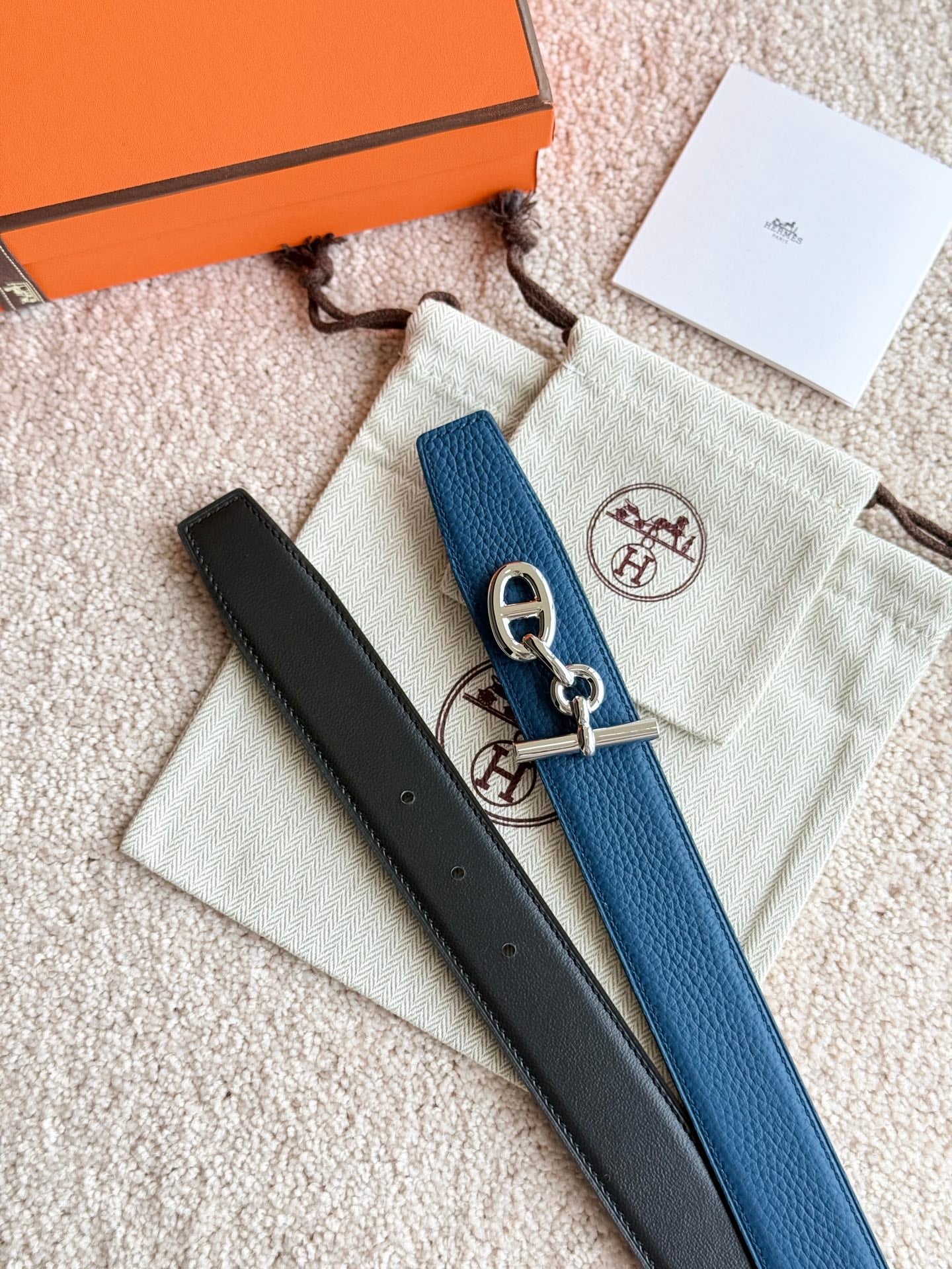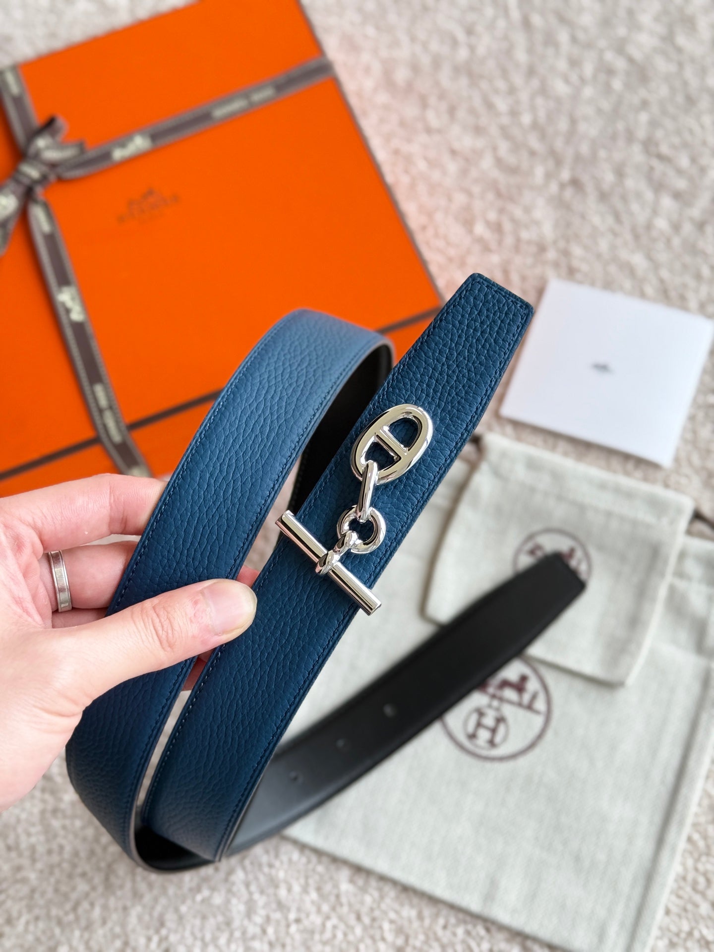 HM Silver Tube H Buckle Belt 38mm Prussian blue Black Leather 187523