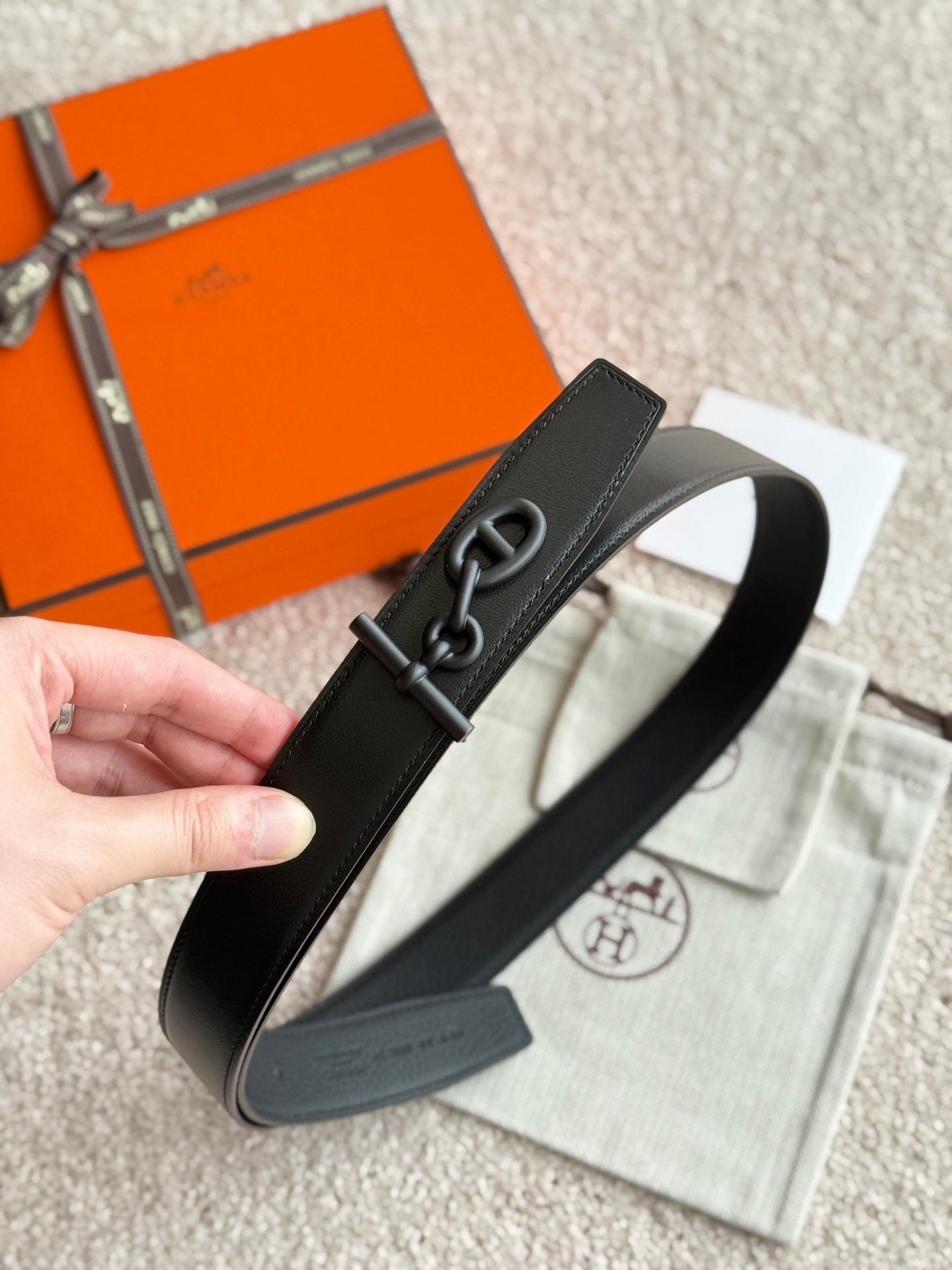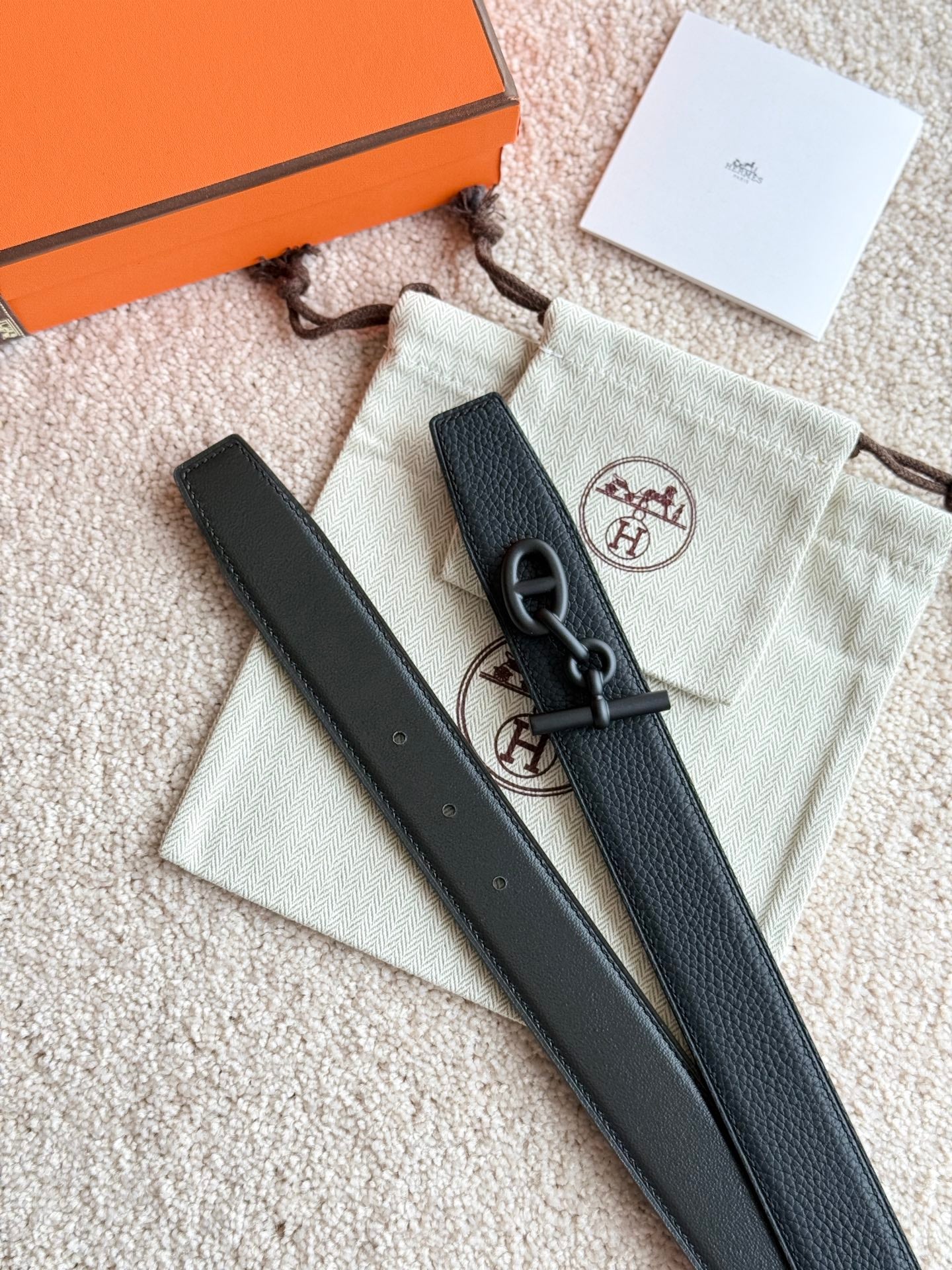 HM Silver Tube H Buckle Belt 38mm Meyer gray Leather 187782