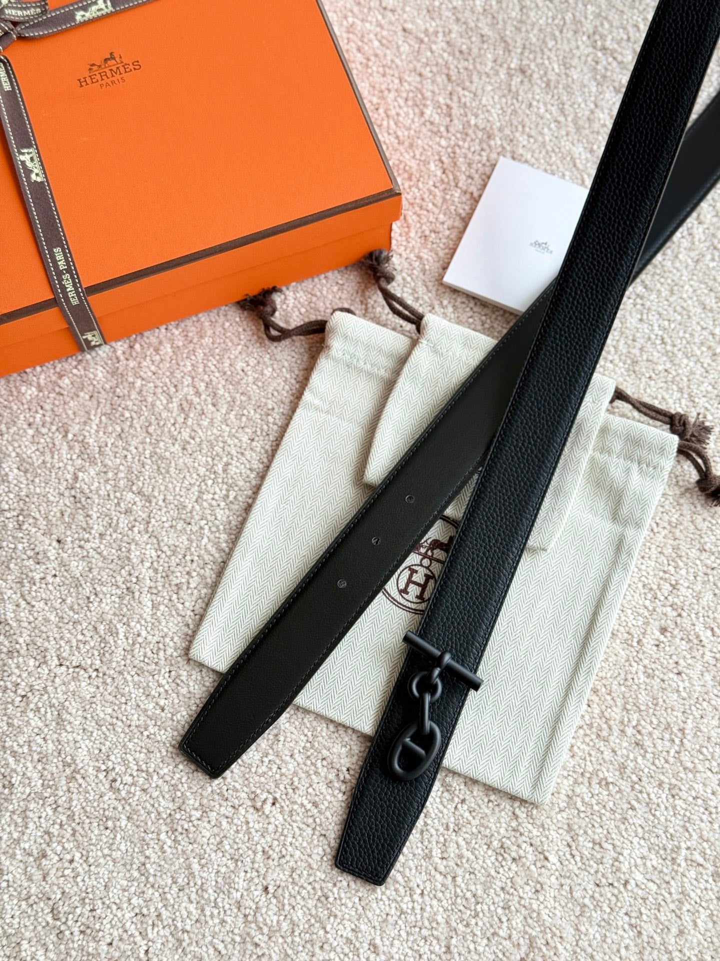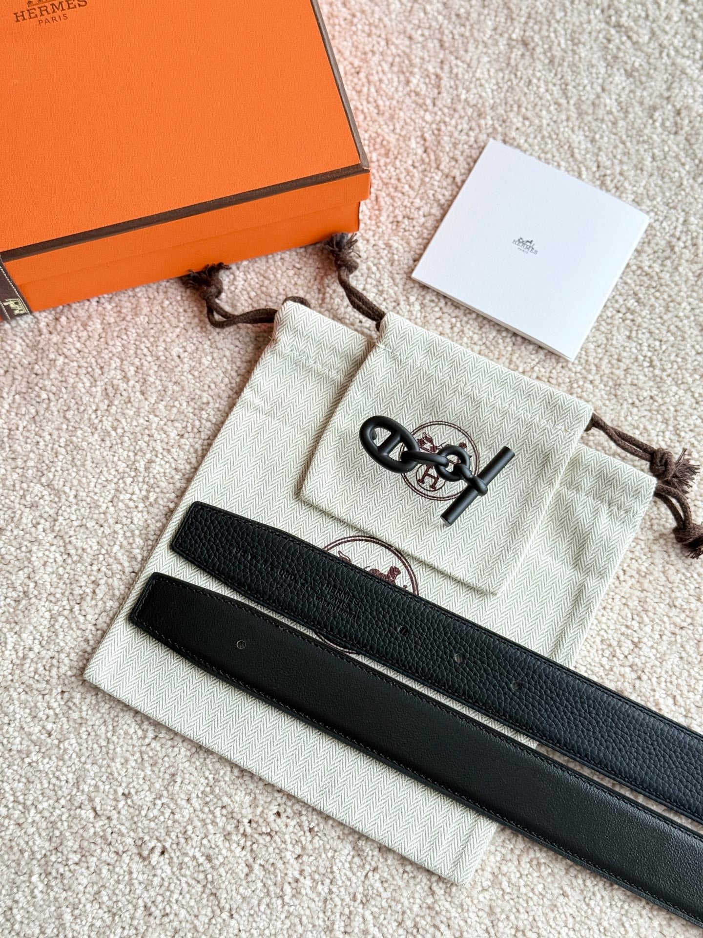 HM Silver Tube H Buckle Belt 38mm Black Leather 187780