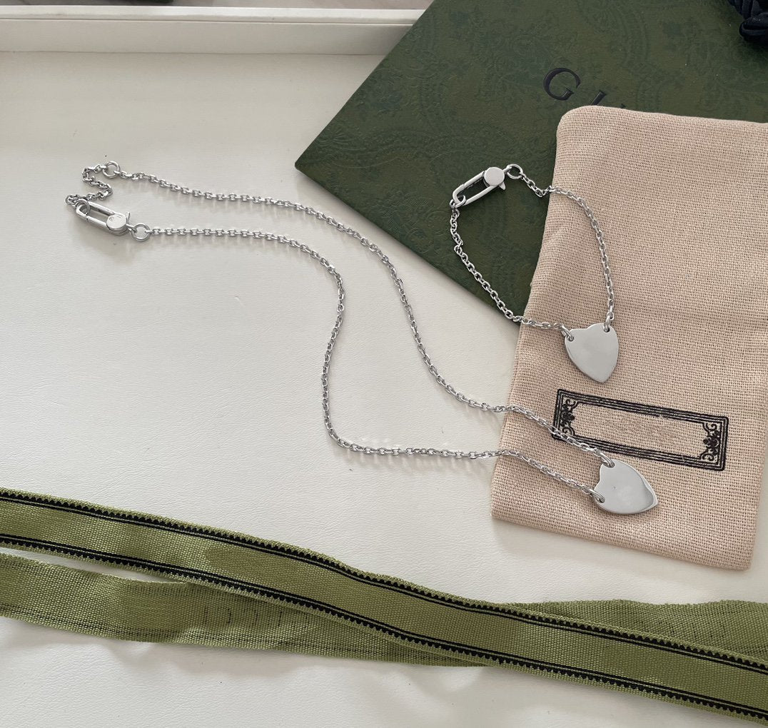 GG PENDANT NECKLACE LOGO ENGRAVED G CHARM TOP PLATE SILVER