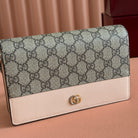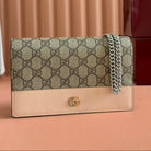 Gucci Marmont Chain Wallet Ebony mix Beige Leather Canvas 255315